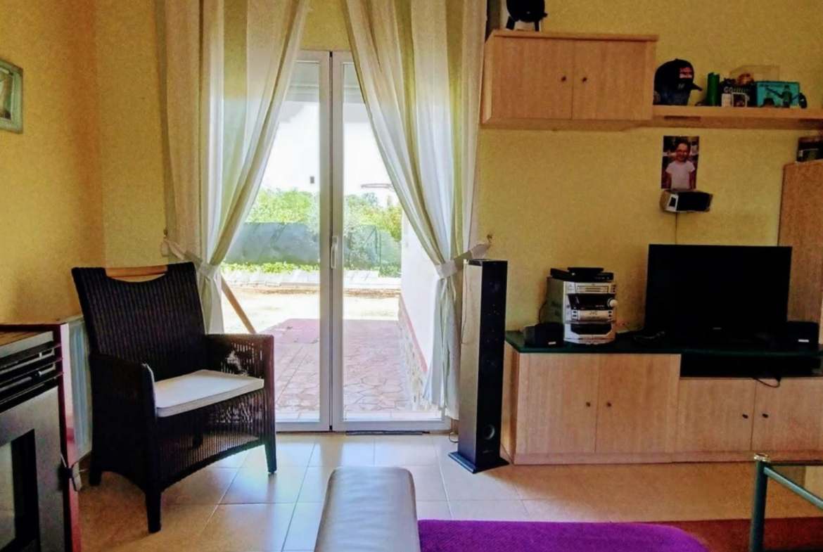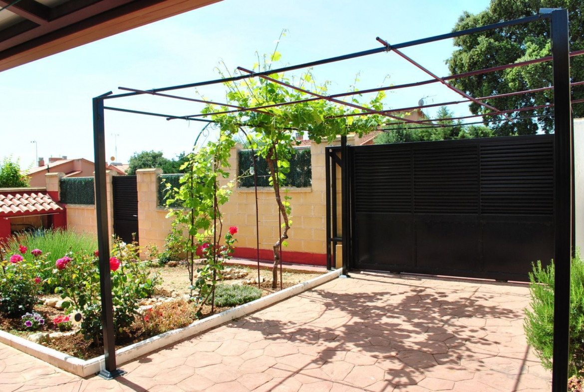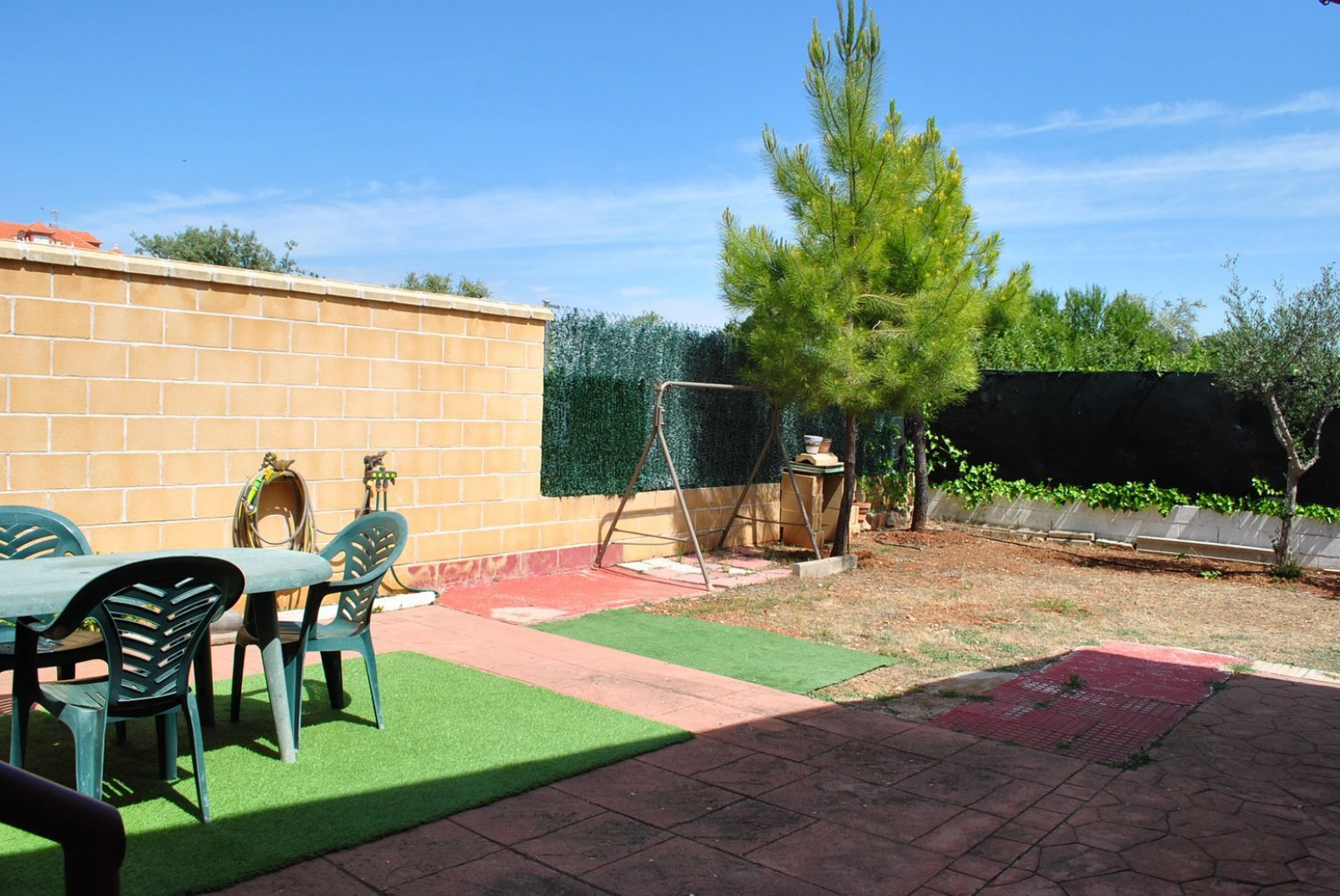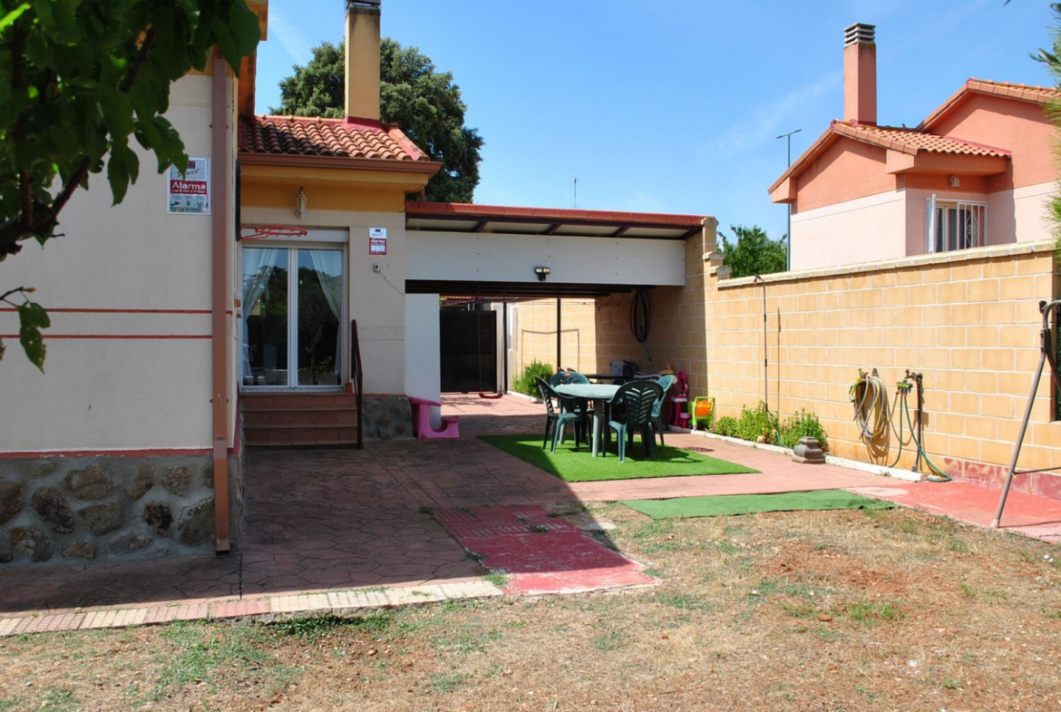 Disponemos a la venta de cómodo y práctico, Chalet pareado de una sola planta con parcela llana y solada parcialmente. La casa cuenta con salón comedor de paso con acceso a la parcela, cocina independiente amueblada y totalmente equipada, tres habitaciones, una de ellas doble y dos individuales, con armarios totalmente vestidos y empotrados y un cuarto de baño completo con bañera. La Parcela es llana y esta solada en la parte delantera, el resto listo para plantar huerto o la construcción de una piscina. La Urbanización cuenta con servicios de farmacia, parada de autobús para los niños para ir al colegio, bar de la comunidad de propietarios y pistas deportivas y jardín Infantil. Rodeada de un parque natural. No dudes en visitarla, te encantara! NO COBRAMOS HONORARIOS AL COMPRADOR.