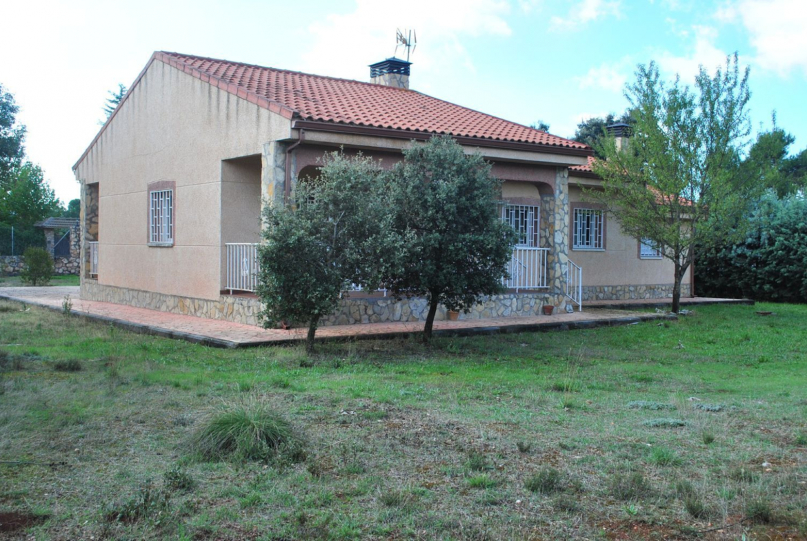 Ubicado en la urbanización el Mirador de Hontoba, Hontoba a 45 minutos de Alcala de Henares, donde podrás diseñar tu huerta, piscina, casa de invitados, y todo lo que quieras en tu parcela de 2.649 m2. La casa de 152 m2 incluido garaje y porches, tiene 114 m2 útiles, formado por un amplio salón comedor independiente con acceso al porche posterior del inmueble y al jardín, cocina independiente equipada y amoblada con acceso al porche del jardín. Un distribuidor da acceso al salón, cocina y pasillo que conduce a las habitaciones y cuartos de baño, las habitaciones 3 de ellas son dobles, una habitación simple, y todas las habitaciones con amplios armarios empotrados. La parcela es llana y 100% aprovechable. La urbanización tiene zonas comunes como Club social piscinas, pistas deportivas, servicio de autocar para el colegio de los niños. Medico de cabecera y autobuses en el pueblo a 5 minutos de la urbanización. Los pagos de IBI anuales son de 300? y el pago de comunidad de 45? por mes.