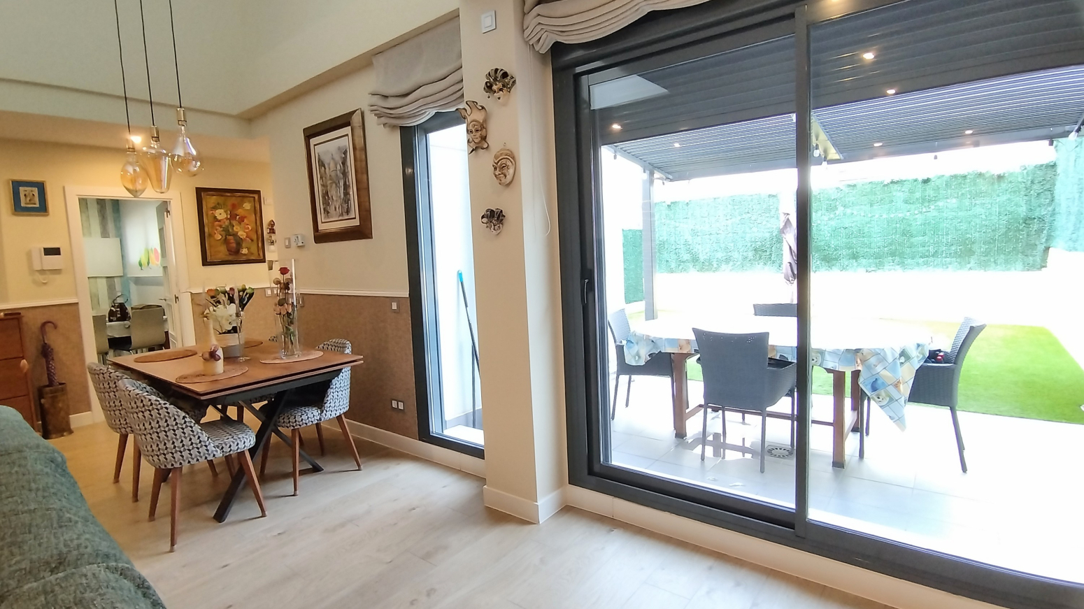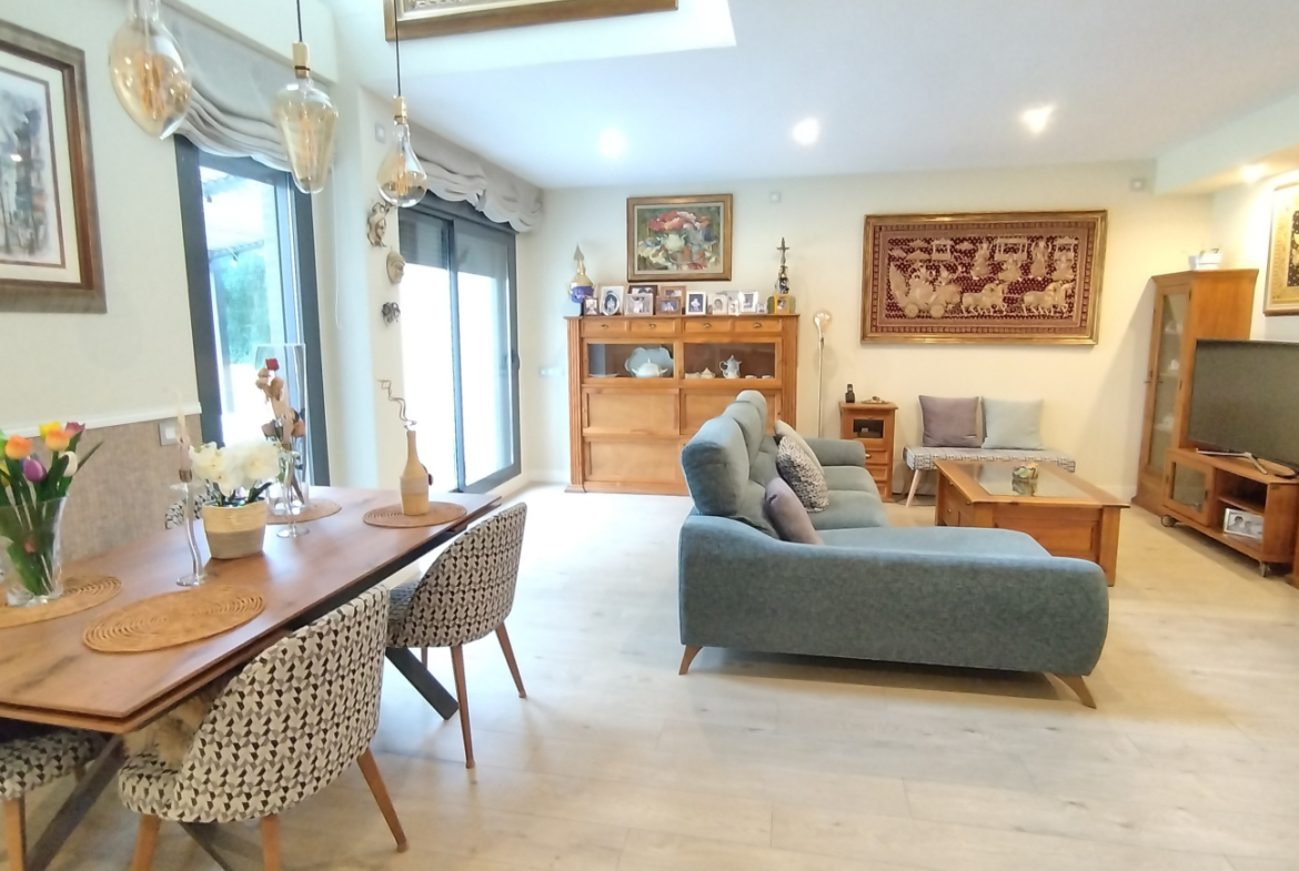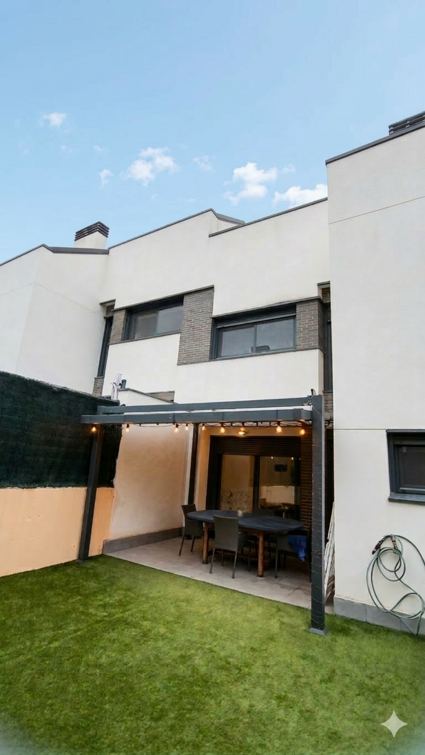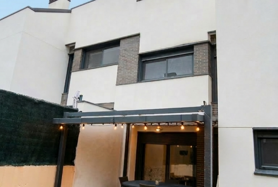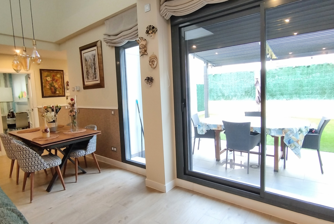La casa dispone de dos plazas de garaje a pie de puerta, permitiendo un acceso directo y sin escaleras. Desde el salón, se accede a un acogedor jardín privado, el refugio perfecto para el descanso al aire libre. Todo ello se integra en una urbanización cerrada con conserje, que ofrece instalaciones de lujo como piscina, parque infantil y un exclusivo Gastrobar para eventos privados, garantizando un entorno seguro y social para toda la familia