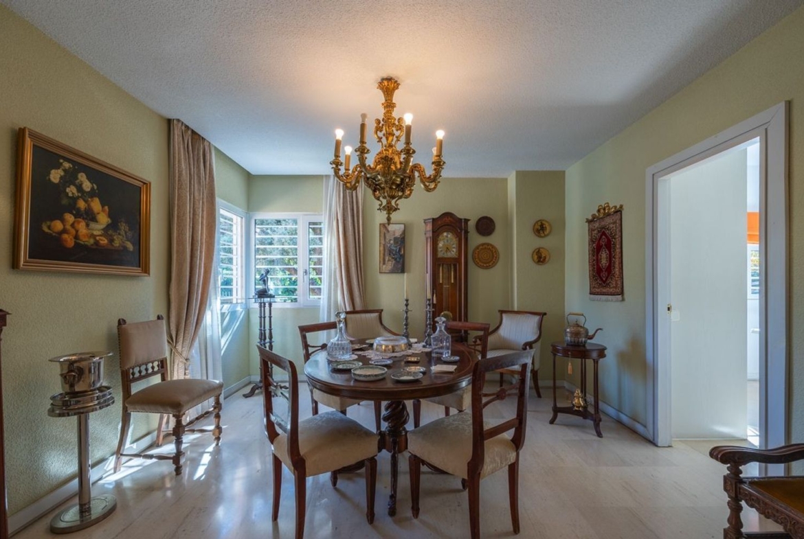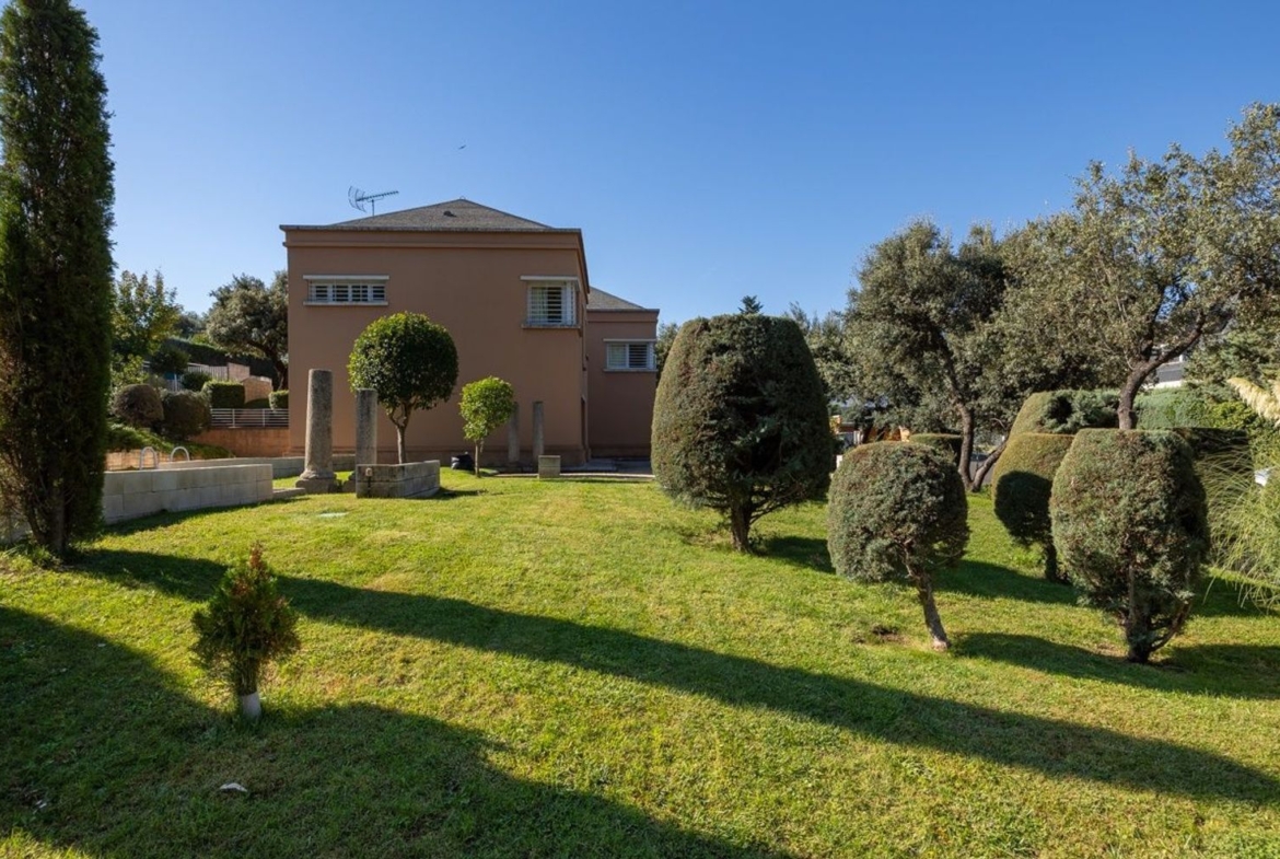 La parcela es espectacular, con unas preciosas vistas al estar en esquina abierta a dos calles. Tiene un muy bien cuidado jardín, que dispone de bonitos espacios para disfrutar y de piscina.