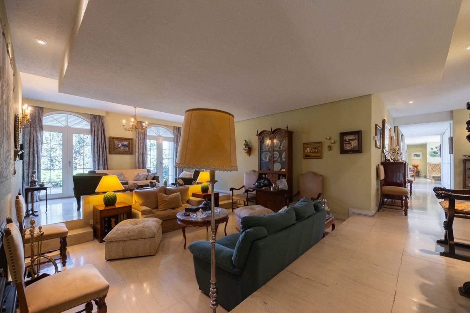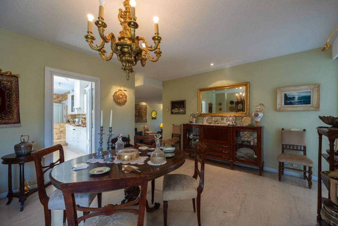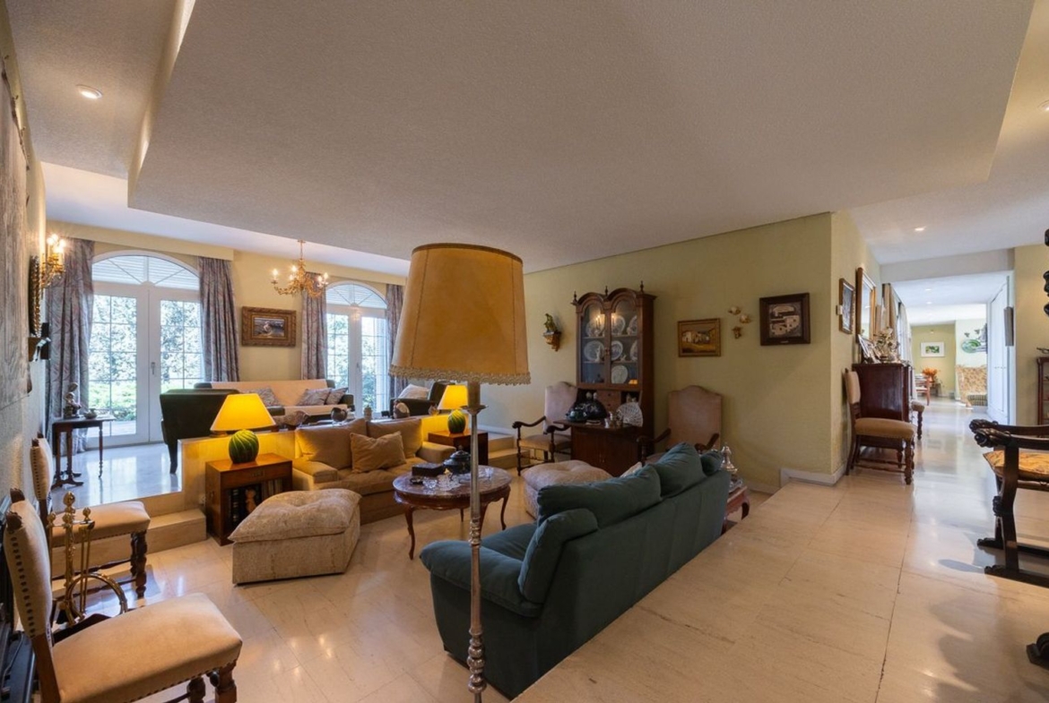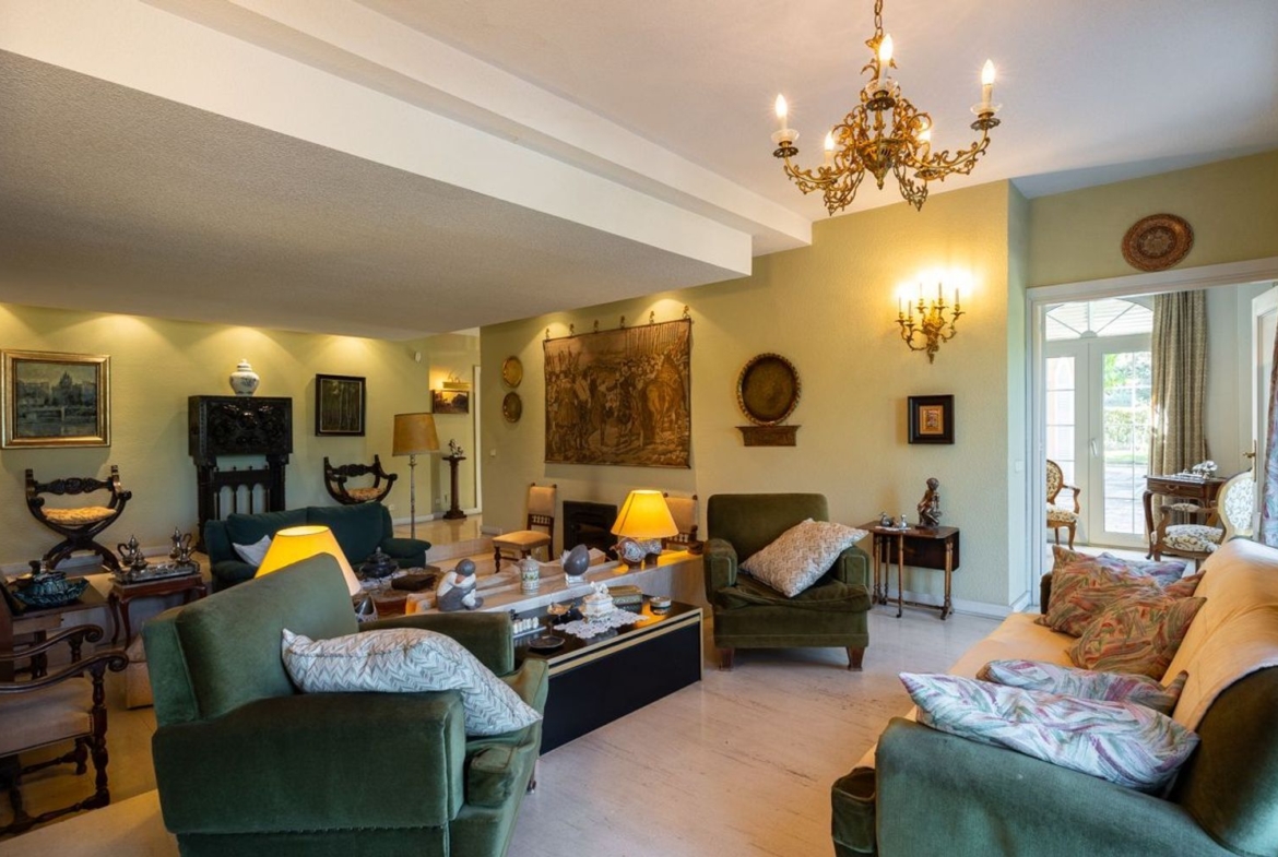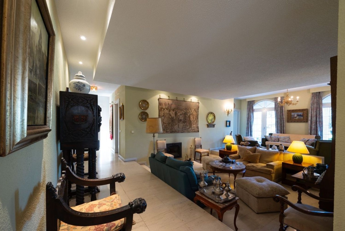 CHALET DE ESTILO CLÁSICO, de 573 m2, básicamente en UNA PLANTA, aunque dispone de otros espacios en planta semisótano. Dispone en total de hasta 5 dormitorios y 5 baños y aseos. Tiene una parte a modo de vivienda totalmente independiente con salón, cocina, dormitorio y baño. La instalación de suelo radiante bajo los suelos de mármol proporciona un gran confort. Dispone de otros espacios complementarios, bodeguita, taller, trastero y alguno pendiente de terminar.