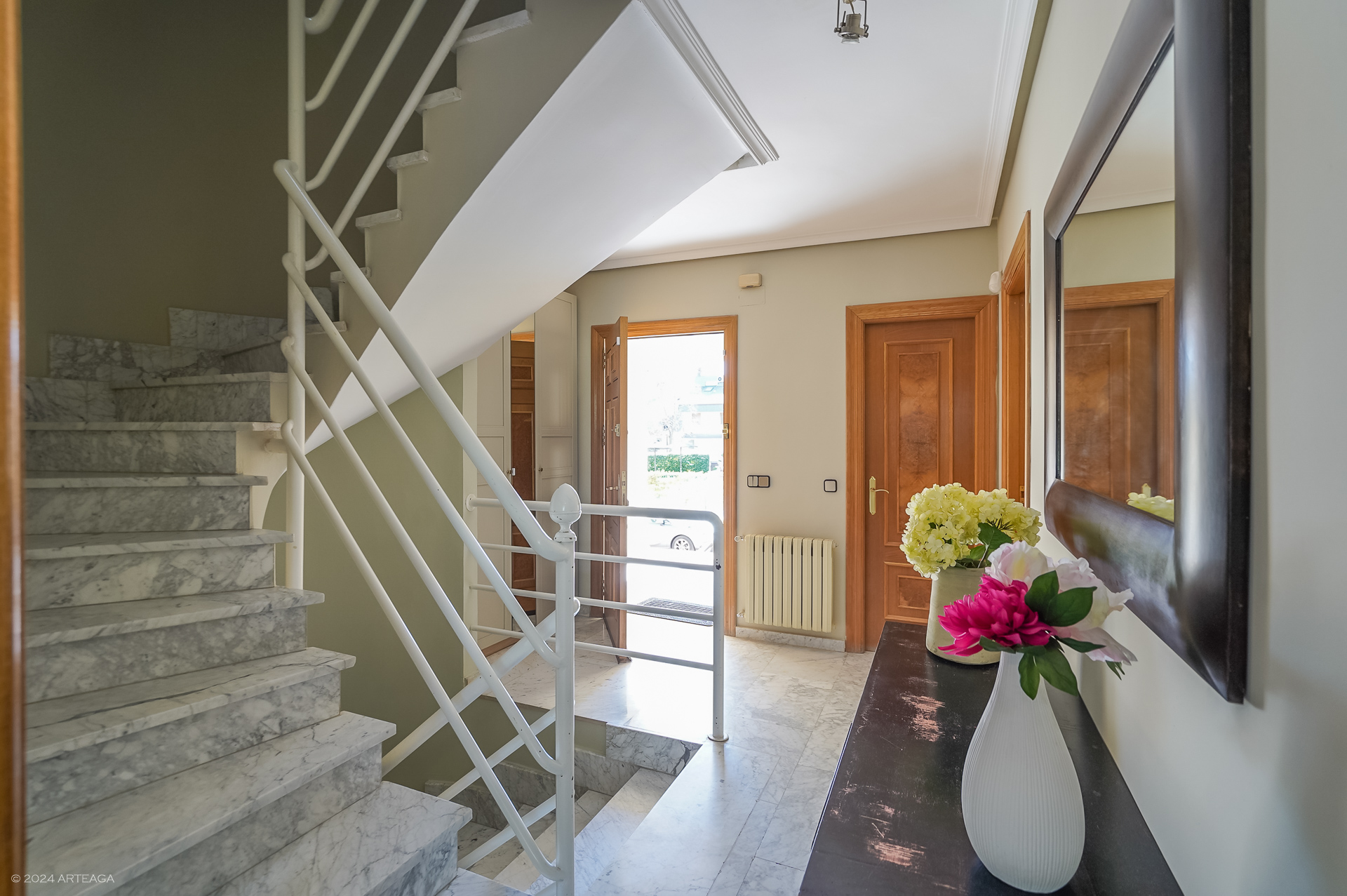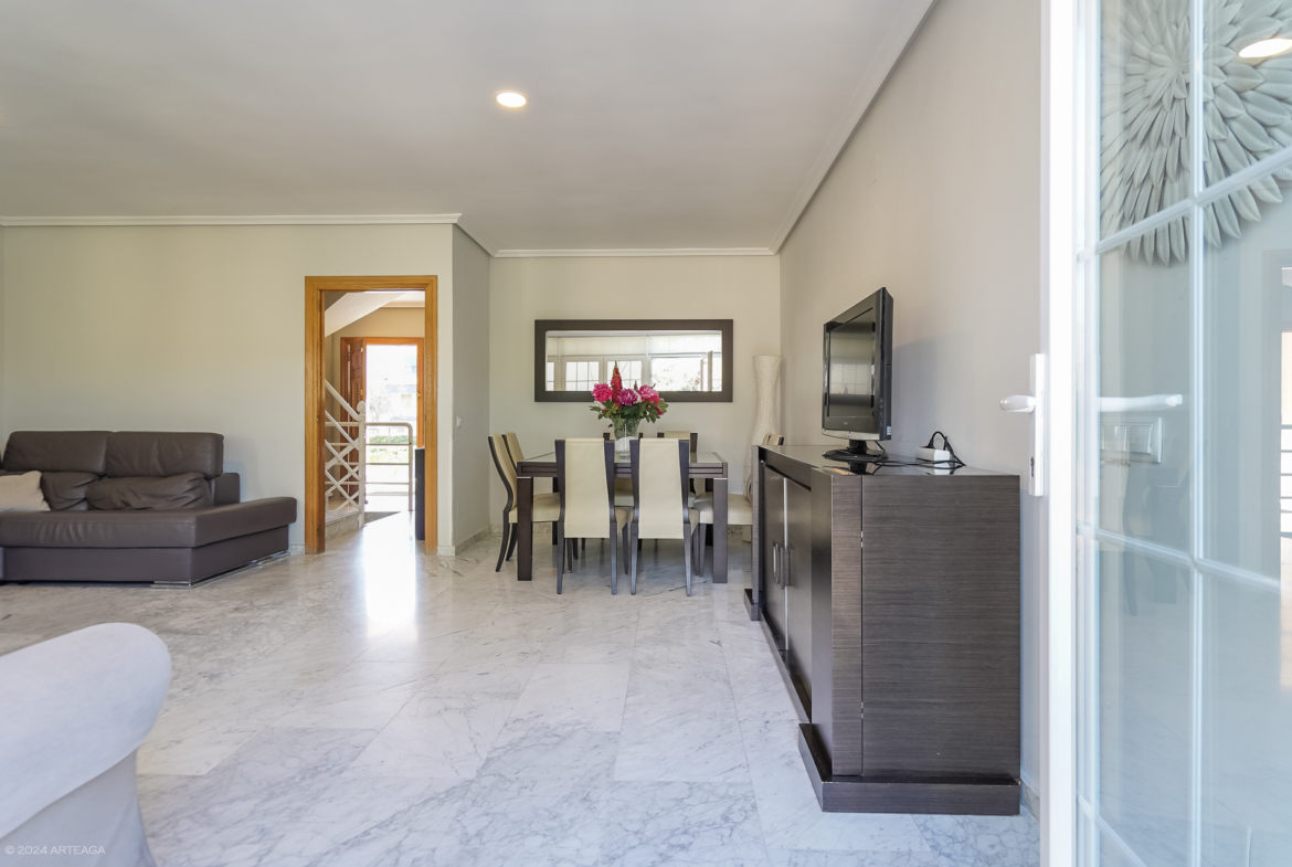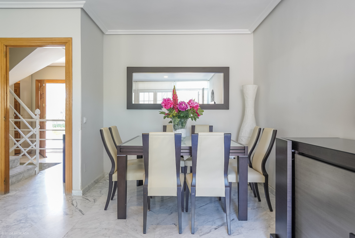 Planta principal: Amplio hall de entrada con armario, aseo de cortesía, cocina amplia con espacio para mesa y posibilidad de unir con salón, tendedero cubierto y gran salón- comedor de 33 m2 con salida directa a jardín trasero.