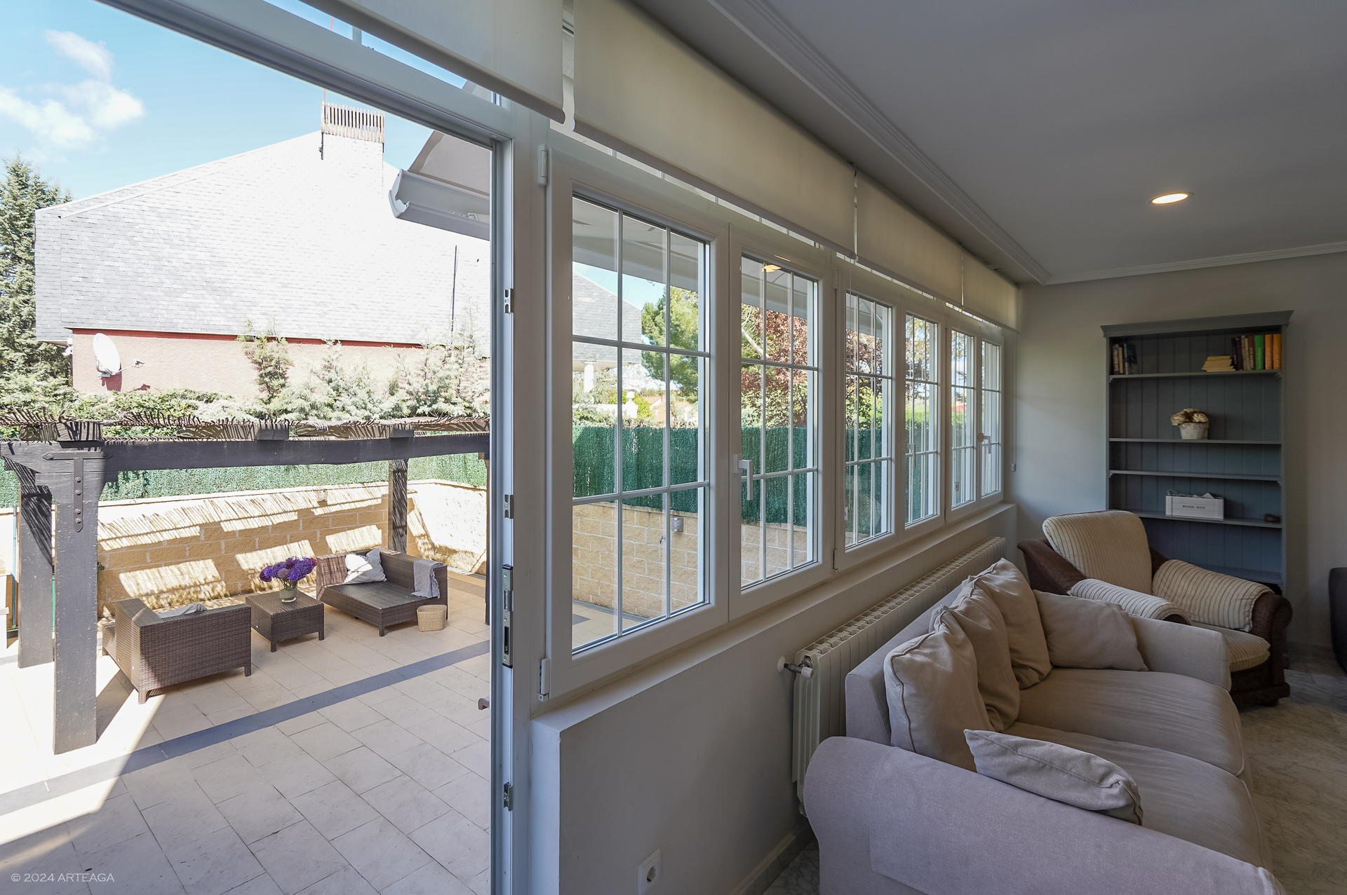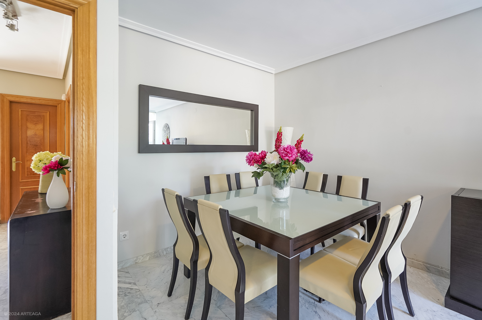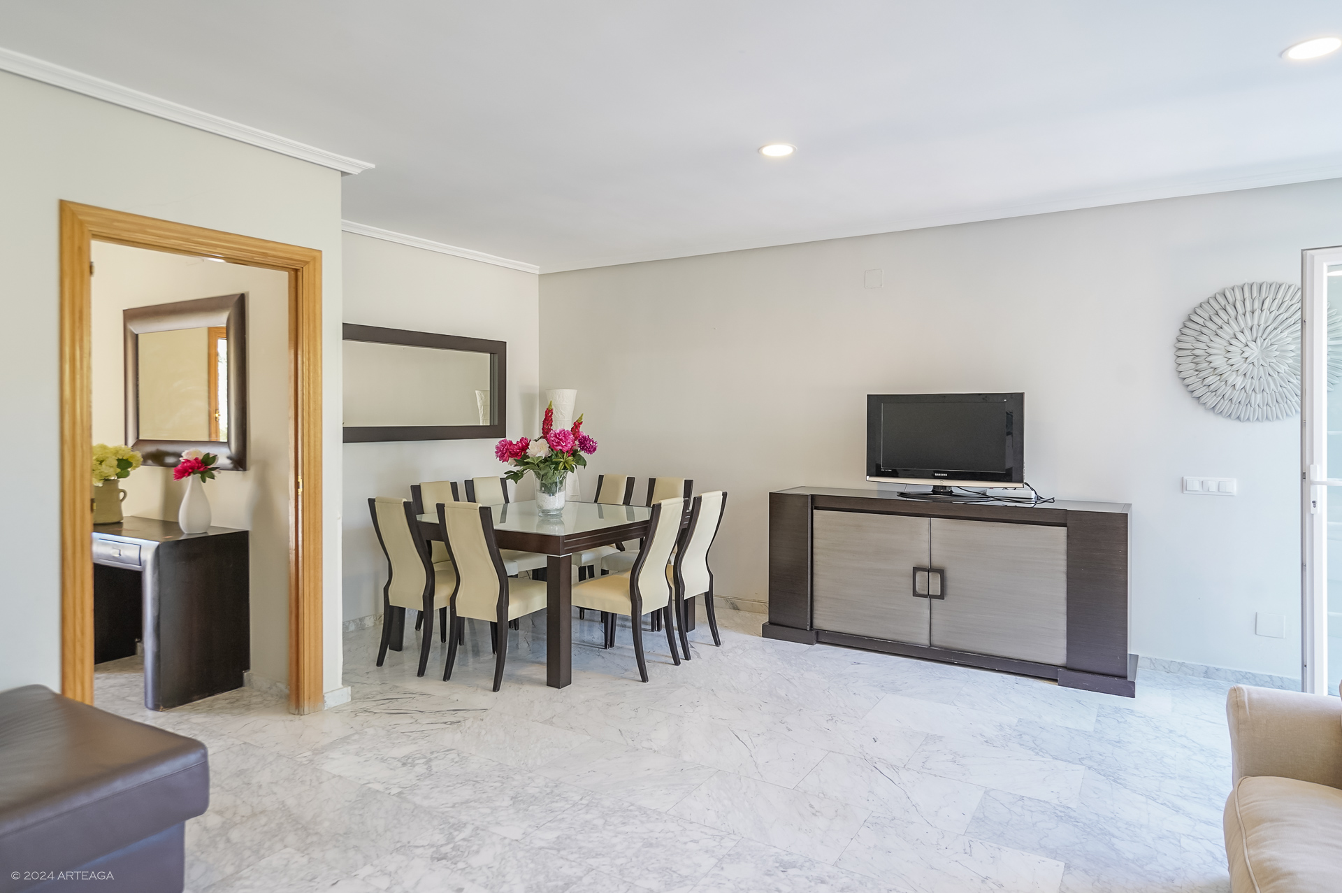 Planta principal: Amplio hall de entrada con armario, aseo de cortesía, cocina amplia con espacio para mesa y posibilidad de unir con salón, tendedero cubierto y gran salón- comedor de 33 m2 con salida directa a jardín trasero.