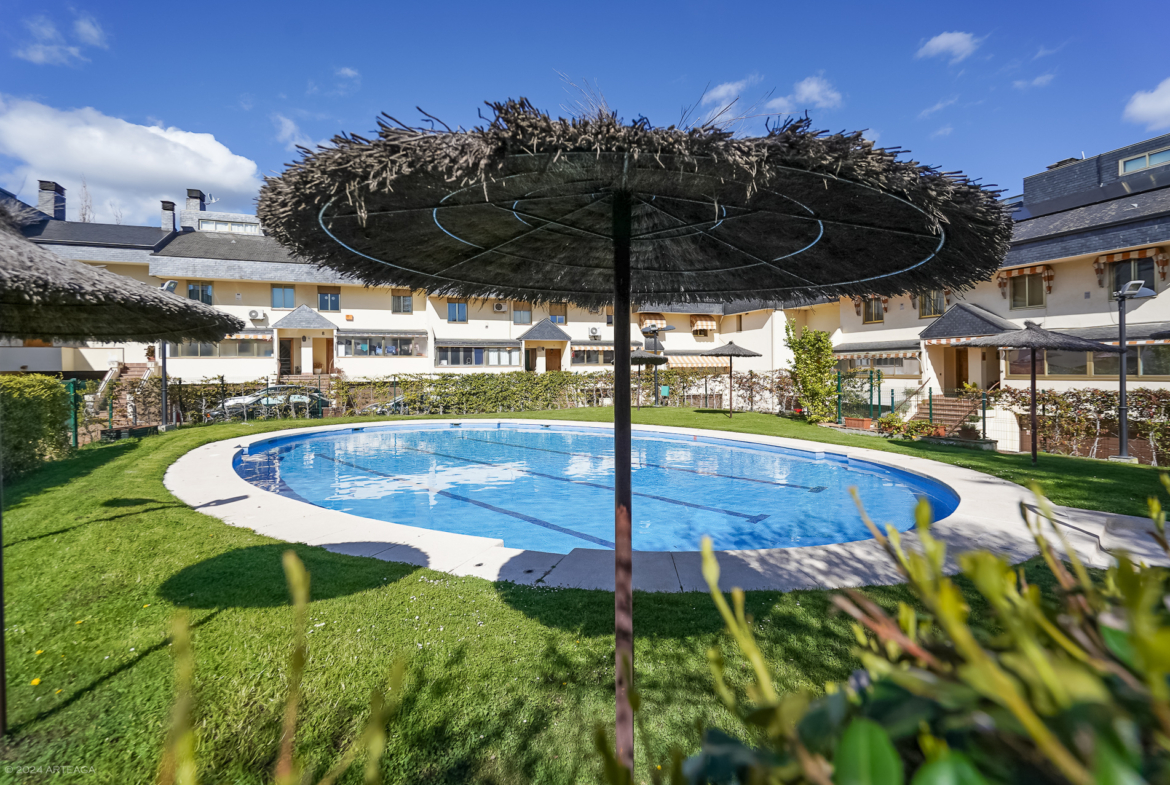 Situada en la Urbanización La Chopera, con fácil acceso a las principales vías de comunicación con Madrid y la sierra, (A6, M50, Carretera del Escorial) y con varias líneas de autobuses en la misma puerta de la urbanización.
