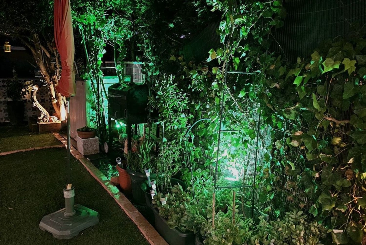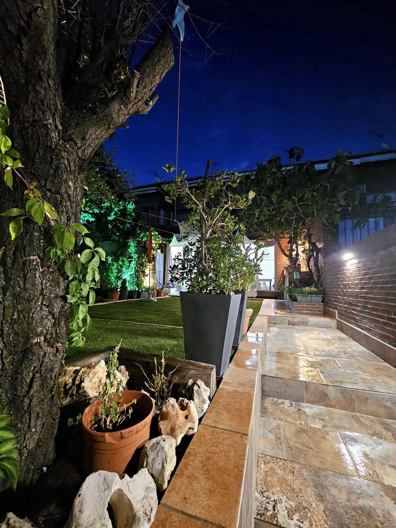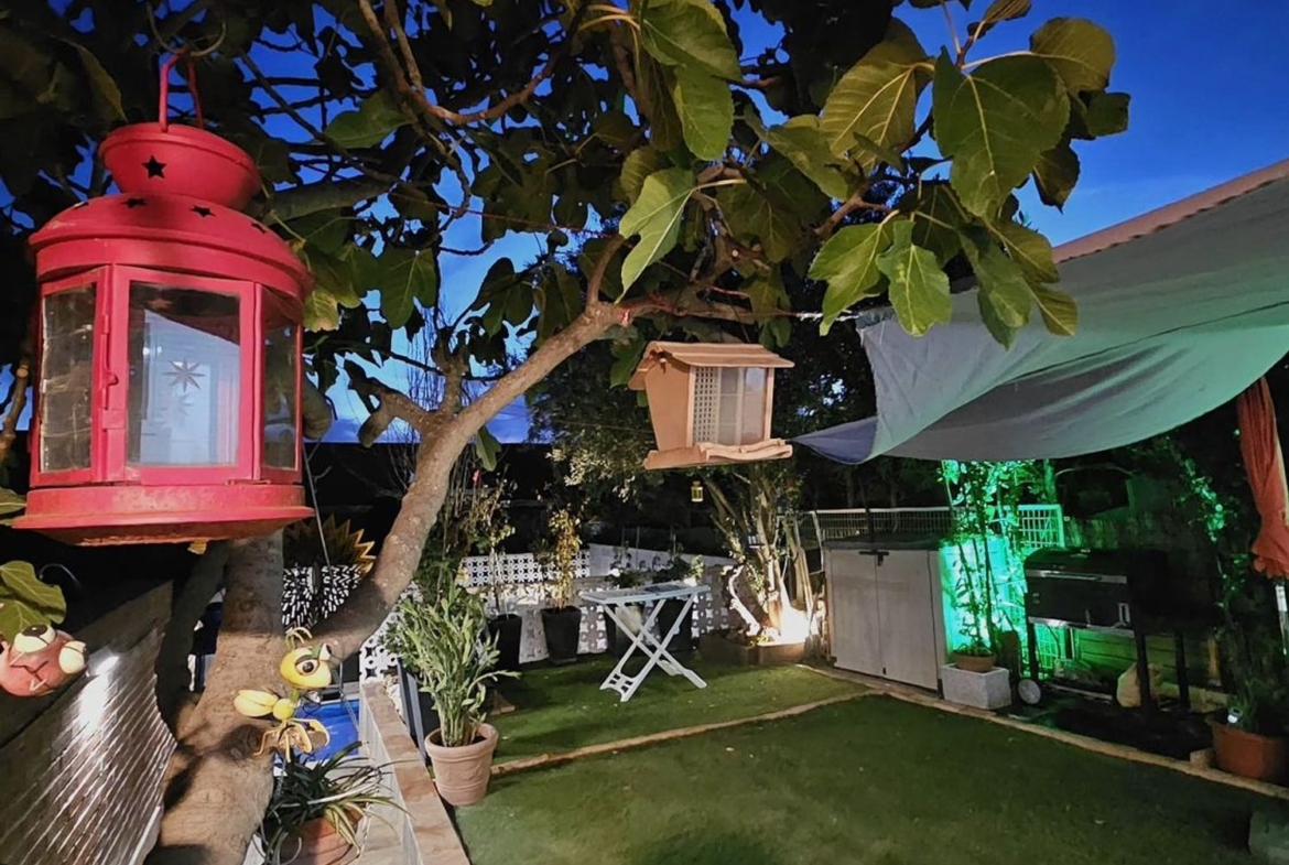 El patio trasero está compuesto por dos zonas: el patio propiamente dicho que dispone de una barbacoa portátil y una mesa con sillas. Por otro lado, rematando el patio, nos encontramos con una piscina de sal.