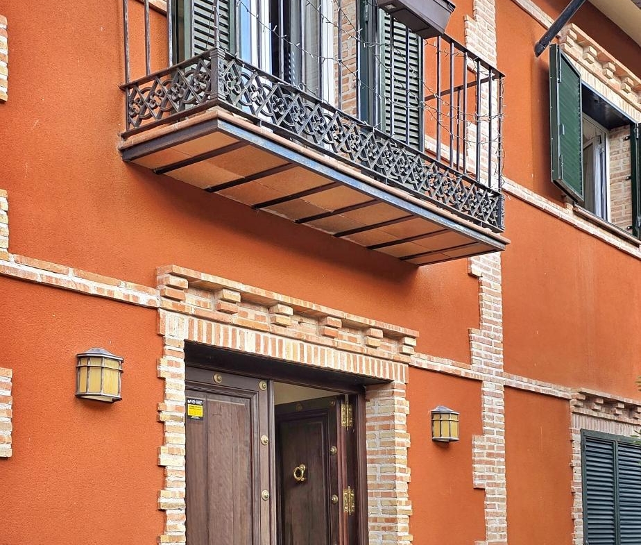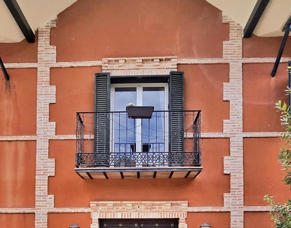– Ladrillo caravista beige: Se utiliza como acento decorativo en esquinas y alrededor de las ventanas. Este tipo de ladrillo no está recubierto, lo que permite apreciar su textura natural. Además de reforzar visualmente los bordes, el ladrillo caravista aporta profundidad y rompe la uniformidad del color terracota, creando un juego de volúmenes muy atractivo.