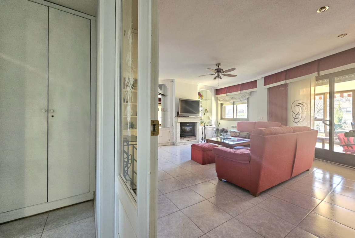 El salón es amplio y está bañado por la luz, gracias a grandes ventanas que ofrecen vistas espléndidas hacia la terraza. Aquí podrá disfrutar de momentos de descanso, lectura, o reuniones en un ambiente agradable. La cocina es espaciosa y funcional, pensada para inspirar su creatividad culinaria y equipada de manera que cada comida sea un placer.