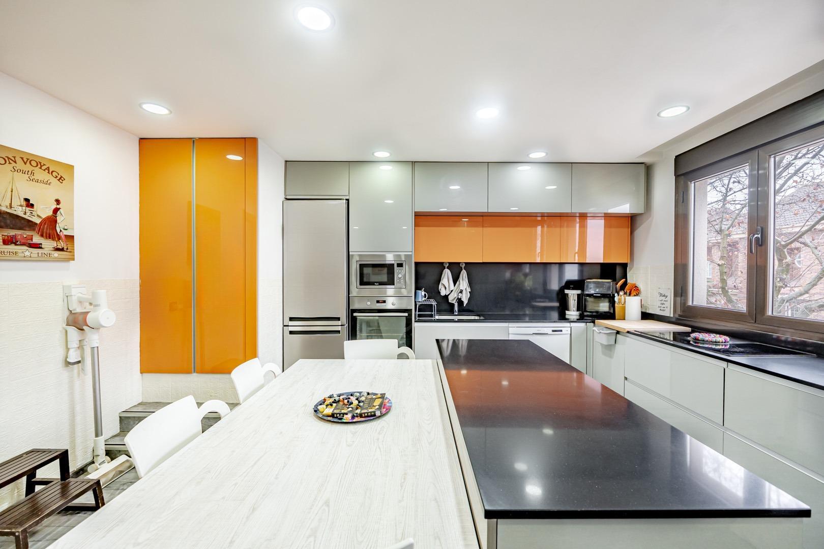 Uno de sus grandes valores añadidos es que la planta de calle ha sido adaptada como un apartamento independiente, con cocina, cuarto de baño y dormitorio, y salida directa al patio y a la piscina comunitaria. Una solución perfecta para familias que necesitan dos viviendas en una (convivencia intergeneracional, invitados, teletrabajo, etc.). Si se prefiere, existe la posibilidad de reconducir la vivienda a su estado original, recuperando el garaje y una sala polivalente o dormitorio adicional.
