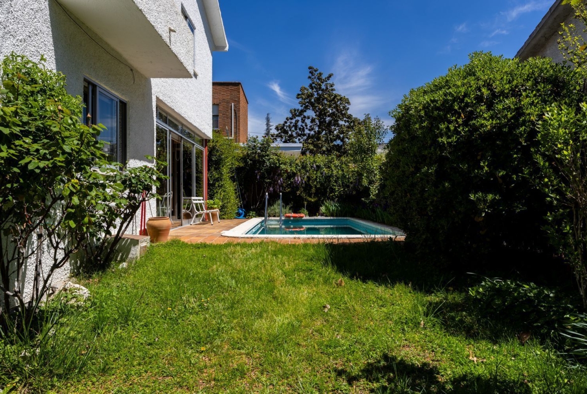 Chalet pareado de dos plantas y semisótano, de 100 metros cuadrados por planta, con jardín y piscina, en Aravaca.