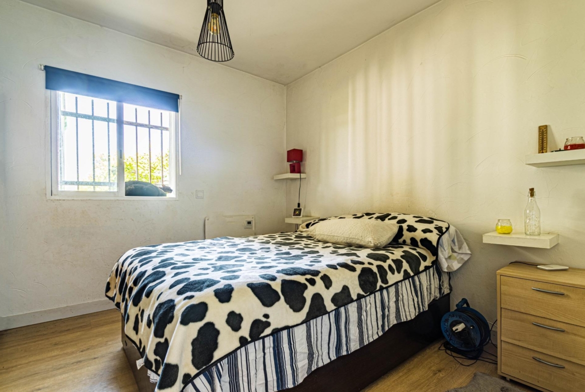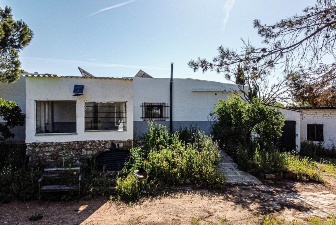 Casa terrera individual, sostenible al 100% con placas solares, chimenea y pozo.