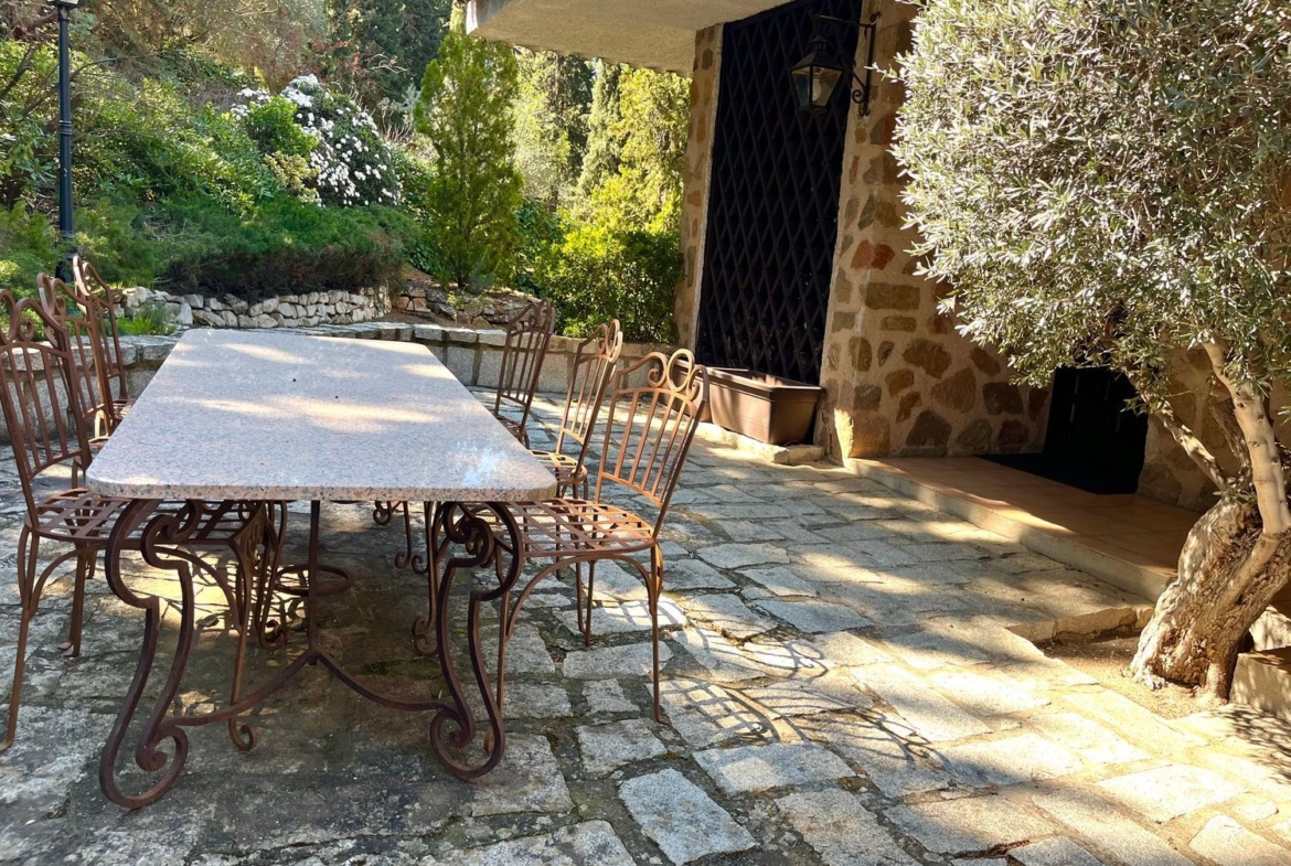 El jardín es un verdadero paseo sensorial: setos cuidados, rincones floridos, caminos entre árboles y un aire que huele a tomillo, romero y a tiempo detenido. Un entorno natural cuidado y lleno de encanto que cuenta con diferentes zonas de estar, rincones sombreados, vegetación mediterránea y una piscina rodeada de naturaleza, perfecta para disfrutar en los meses de verano.