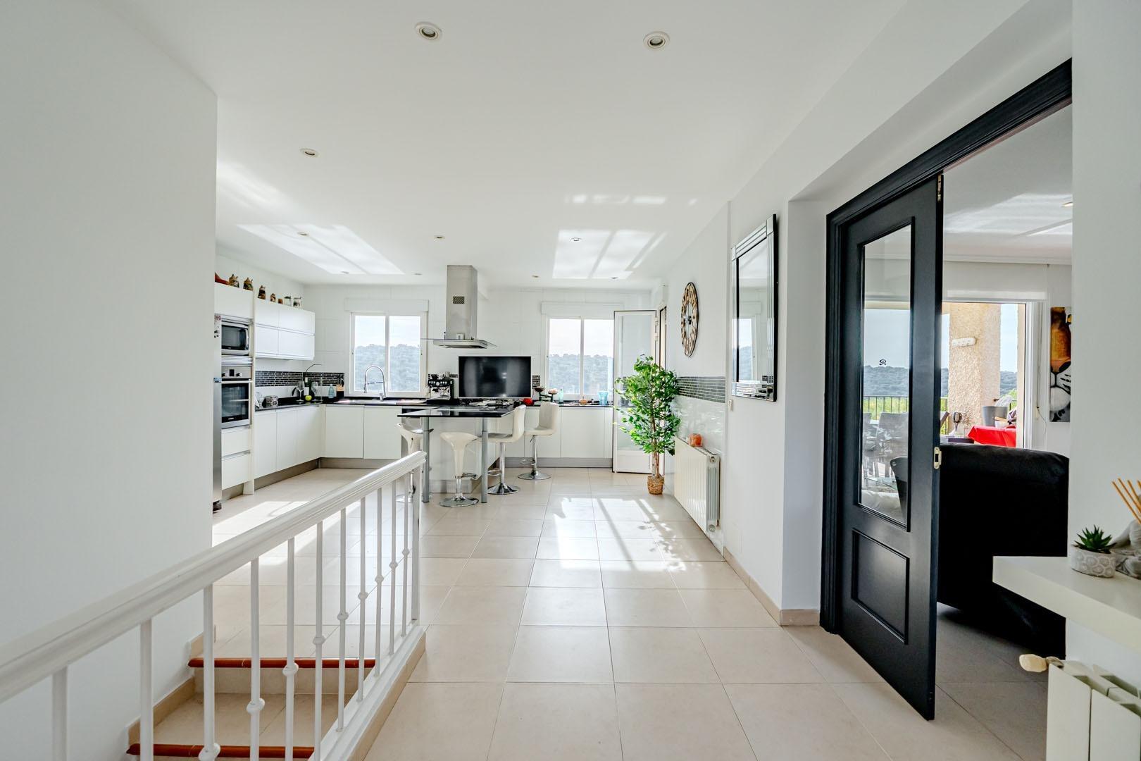 La cocina abierta, completamente reformada y equipada con los mejores acabados, es el corazón de la casa, ideal para disfrutar de momentos gastronómicos en familia o con amigos.