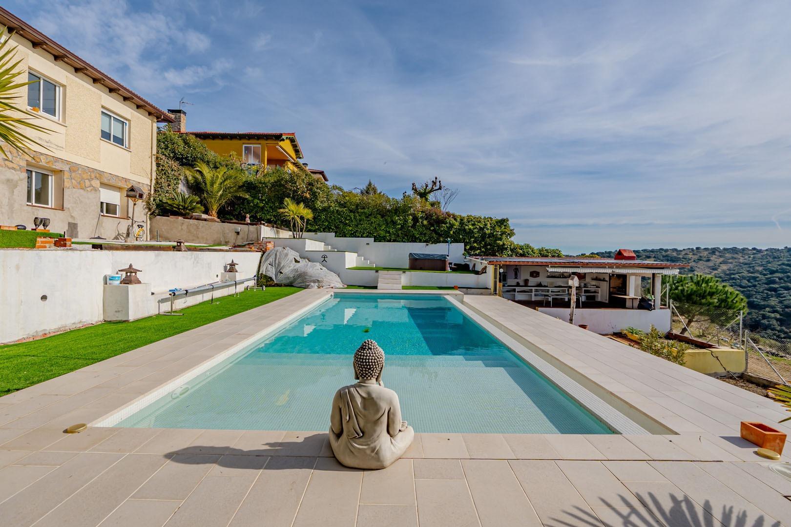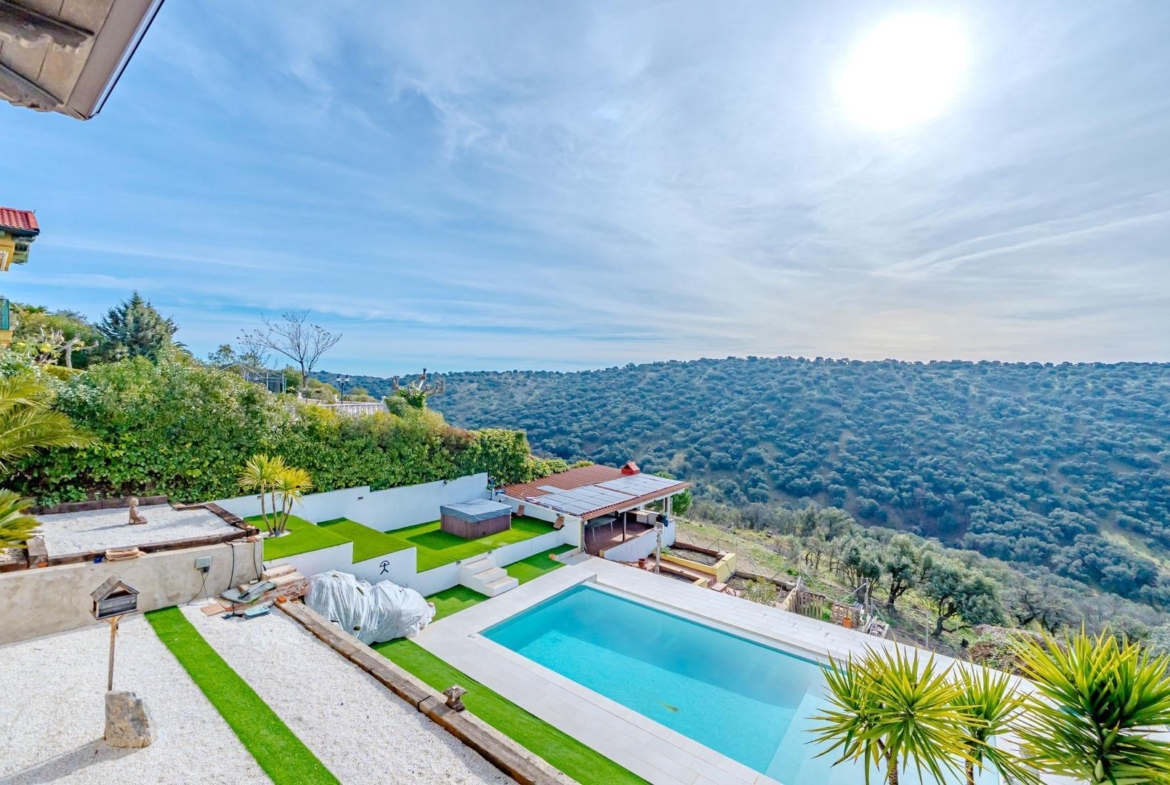 Al entrar, te recibirán unas vistas espectaculares al valle, un paisaje que invita a la calma y serenidad, brindándote una conexión especial con la naturaleza. El chalet, cuidadosamente diseñado con acabados de lujo, incluye detalles como ventanas de climalit, pintura lisa y suelos cerámicos que añaden elegancia a cada rincón.