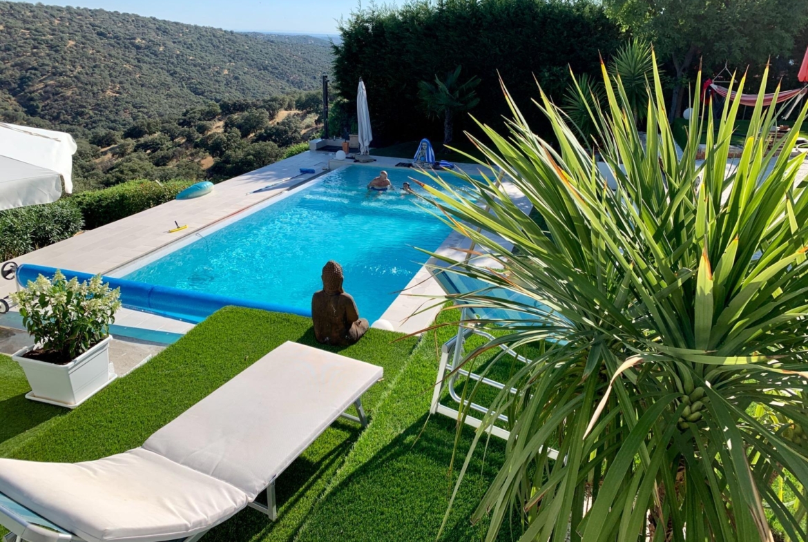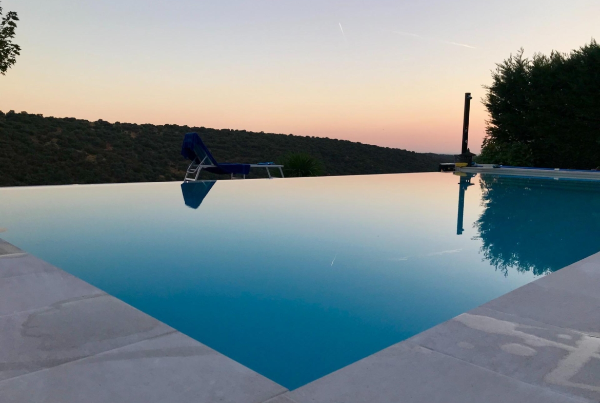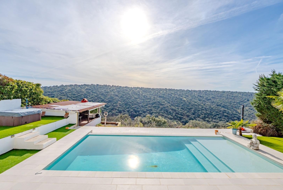 El espacioso salón, que se abre a una magnífica terraza donde disfrutarás de unas vistas inigualables, cuenta con una chimenea que aporta calidez a los días de invierno, mientras que en el exterior, la joya de la casa: una piscina infinity, que parece fusionarse con el paisaje, y un jacuzzi para relajarte bajo el cielo estrellado.