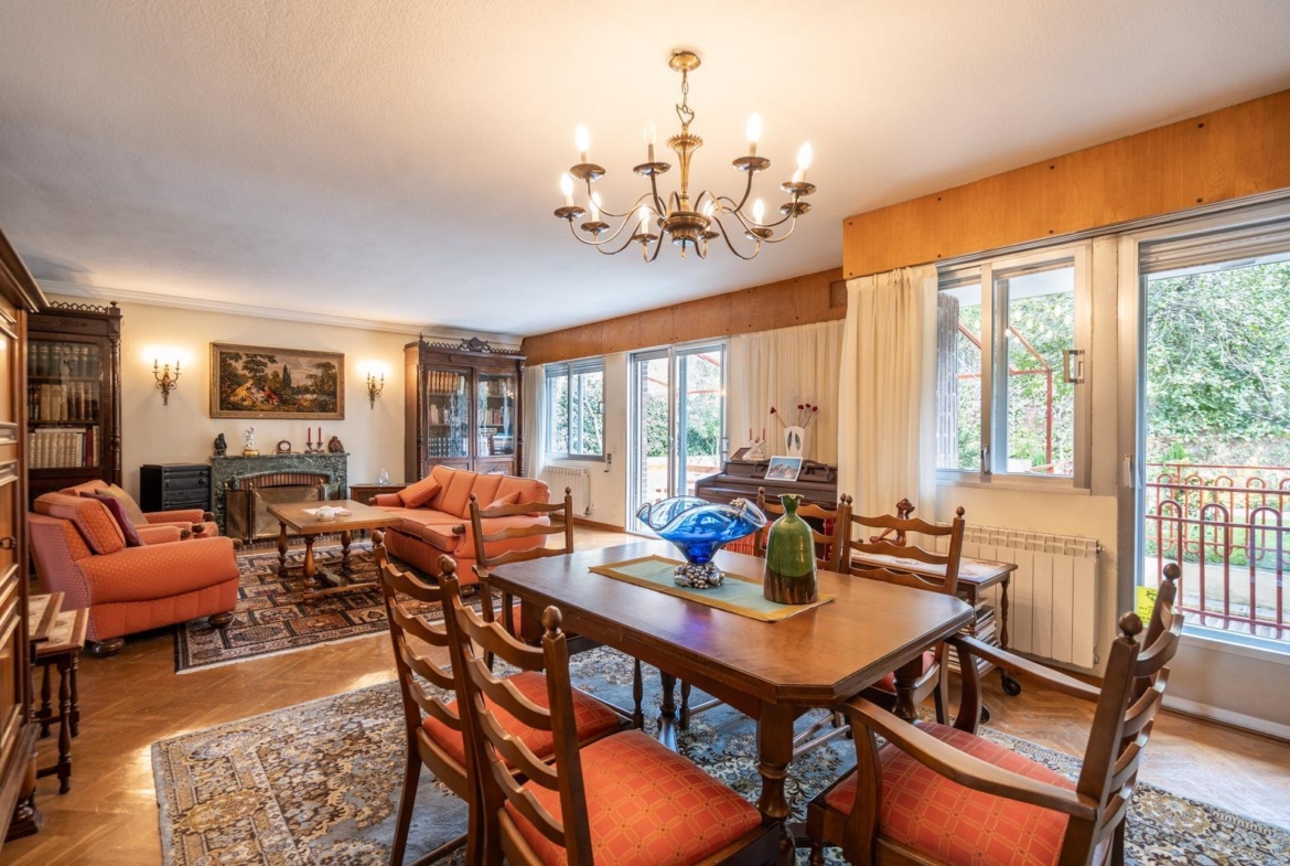 Desde la entrada accedemos a un amplio y elegante vestíbulo que marca el carácter señorial de la vivienda. A continuación, encontramos un espacioso salón-comedor con chimenea, muy luminoso gracias a su orientación y con salida directa a una agradable terraza y al jardín privado.