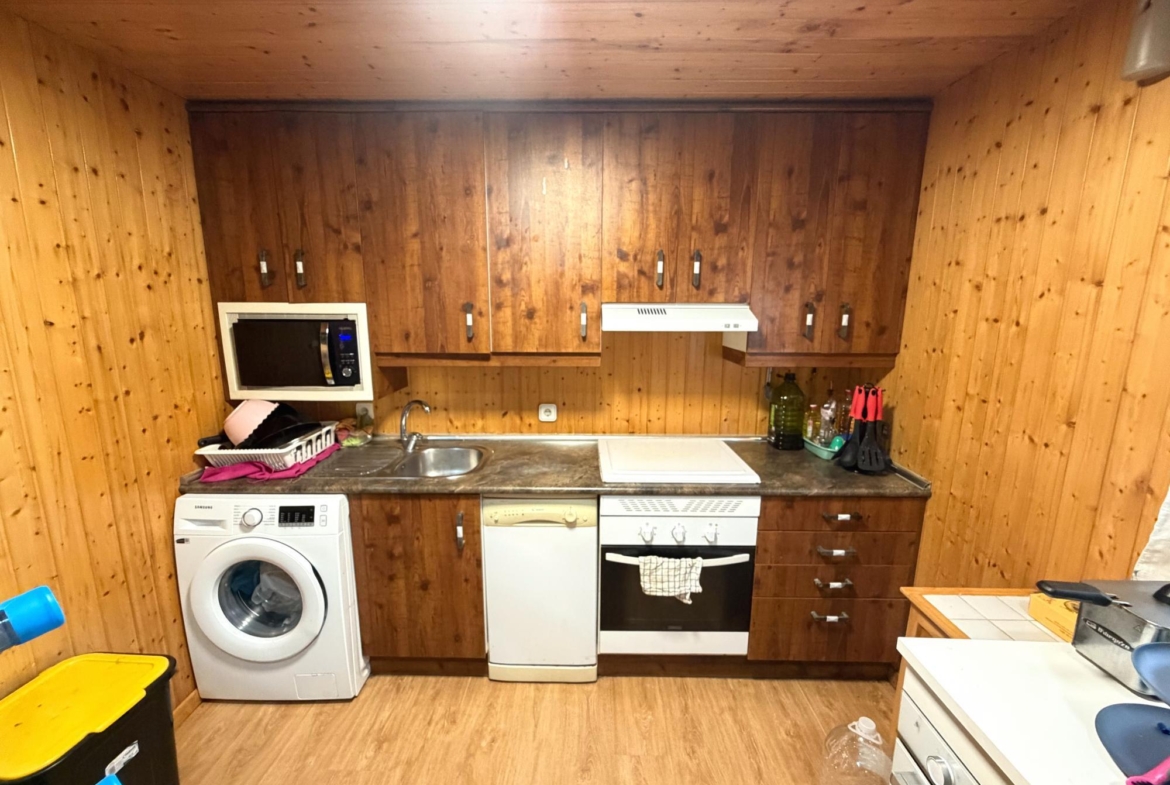 El salón, acogedor y luminoso, es perfecto para disfrutar de momentos de descanso en familia. La cocina independiente, equipada y amueblada, dispone además de zona de comedor, convirtiéndose en un espacio funcional y muy agradable.