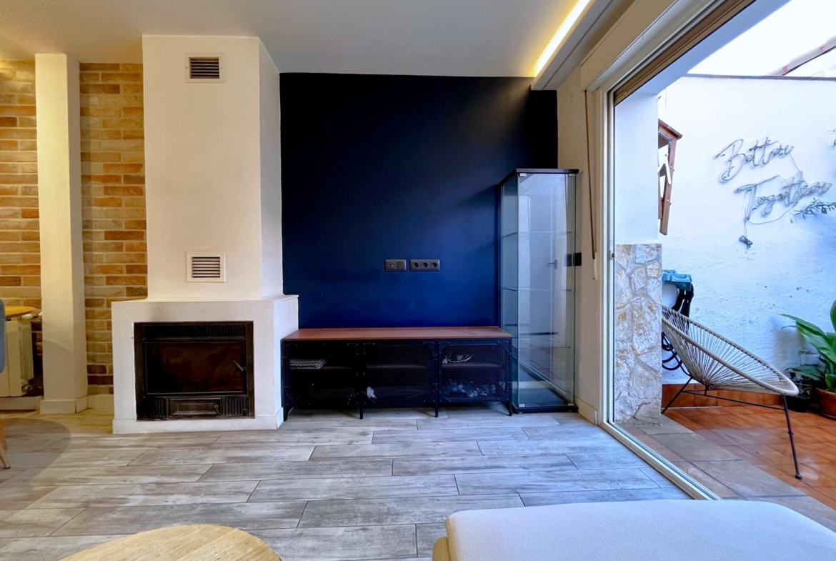El amplio salón constituye el corazón de la casa, un lugar donde podrás crear momentos únicos con tus seres queridos. Dispone de un cómodo aseo, una elegante chimenea funcional y una gran cristalera que inunda el espacio de luz natural, haciendo de este rincón el ambiente ideal para desconectar. Además, las dos grandes puertas que conectan el salón con el patio ofrecen una armoniosa transición entre las áreas interior y exterior.