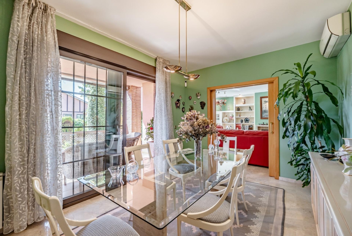 Desde estas estancias se accede al jardín privado, un auténtico refugio exterior con una hermosa forestación, creando un entorno relajante y natural perfecto para el disfrute durante todo el año.