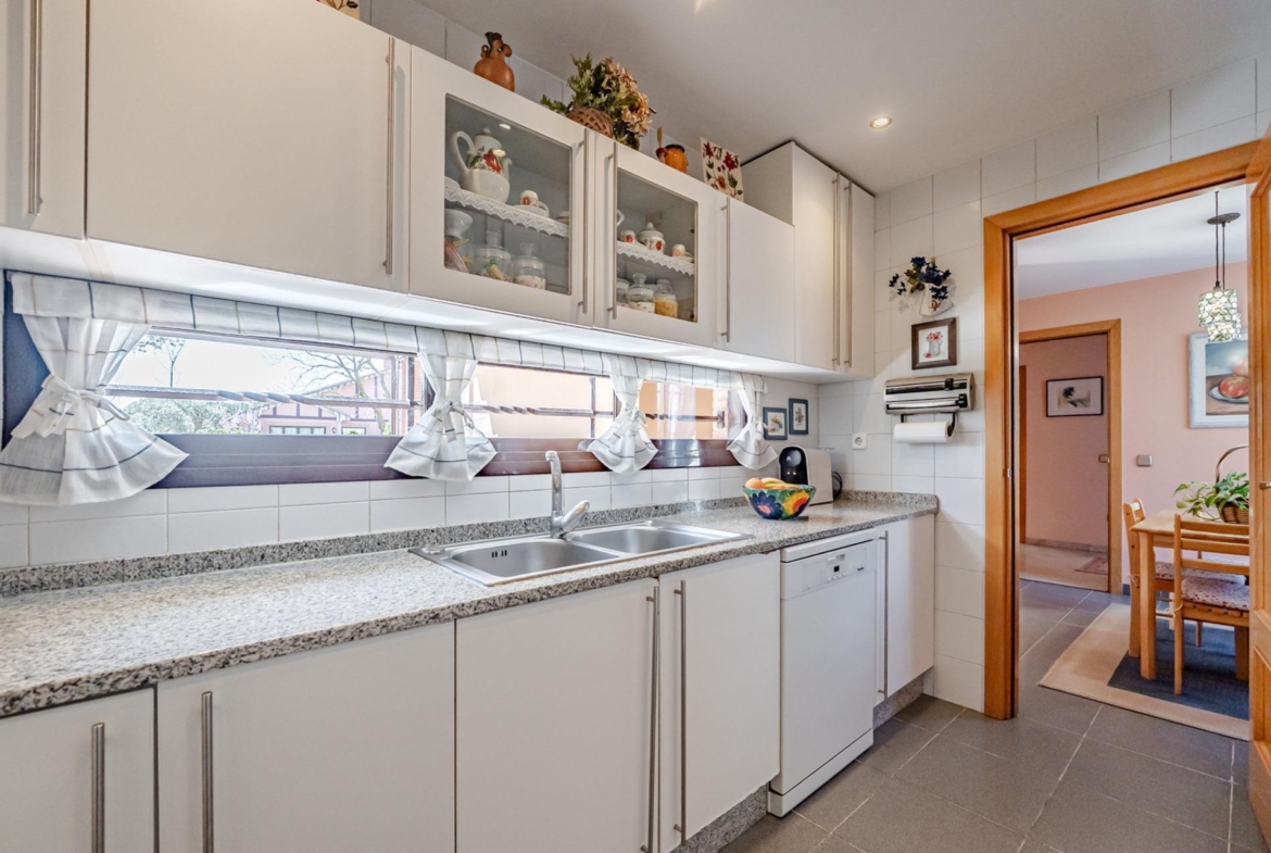 En la PLANTA BAJA se encuentran las principales áreas comunes. El acceso se realiza a través de un hall distribuidor desde el que se conecta directamente con la cocina dotada con office de 15,6 m2, una estancia ideal para zona de trabajo de 12,8 m2 y un práctico aseo de invitados, asegurando una circulación cómoda y eficiente. El hall da paso también a un salón de 32,5 m² y un comedor de 13,3 m², lleno de luz natural, ideal para reuniones familiares y celebraciones.