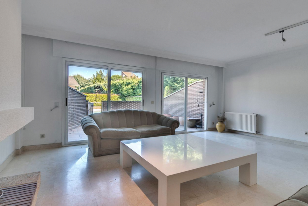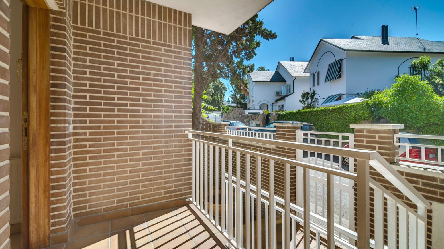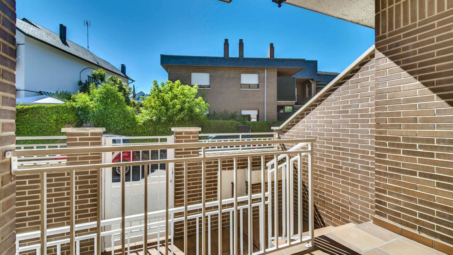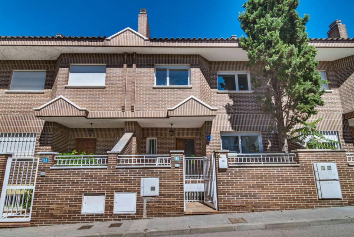 CHALET ADOSADO EN PLENO CENTRO DE TORRELODONES POR 545.000?. La vivienda pertenece a una pequeña urbanización de ocho chalets y consta de cuatro plantas. La baja y principal tiene según entramos al hall de entrada la cocina a mano derecha, un aseo de cortesía a la izquierda y un gran salón en el frente dotado de chimenea francesa. Desde dicho salón salimos a la parte posterior de la vivienda con una gran terraza solada desde la que se accede directamente a la piscina común. En la planta primera está el dormitorio principal que en su día eran dos habitaciones por lo que ocupa toda la fachada de la casa y tiene dos grandes armarios estilo vestidor y un cuarto de baño todo de mármol. además hay otras dos habitaciones dobles con otro de baño completo también de mármol. La buhardilla es diáfana. por último la planta semisótano, tiene una habitación multiusos con un cuarto de baño completo y un garaje con capacidad para dos coches en paralelo lo que permite entrar y salir con independencia del otro coche además de zona de trastero. La vivienda consta de muy buenas calidades con mármol en baños y suelos y parquet de madera natural (recién barnizado) en zona de dormitorios. Todo esto se complementa con la excelente ubicación de la vivienda ya que está en el centro del municipio a un paso de todos los servicios.