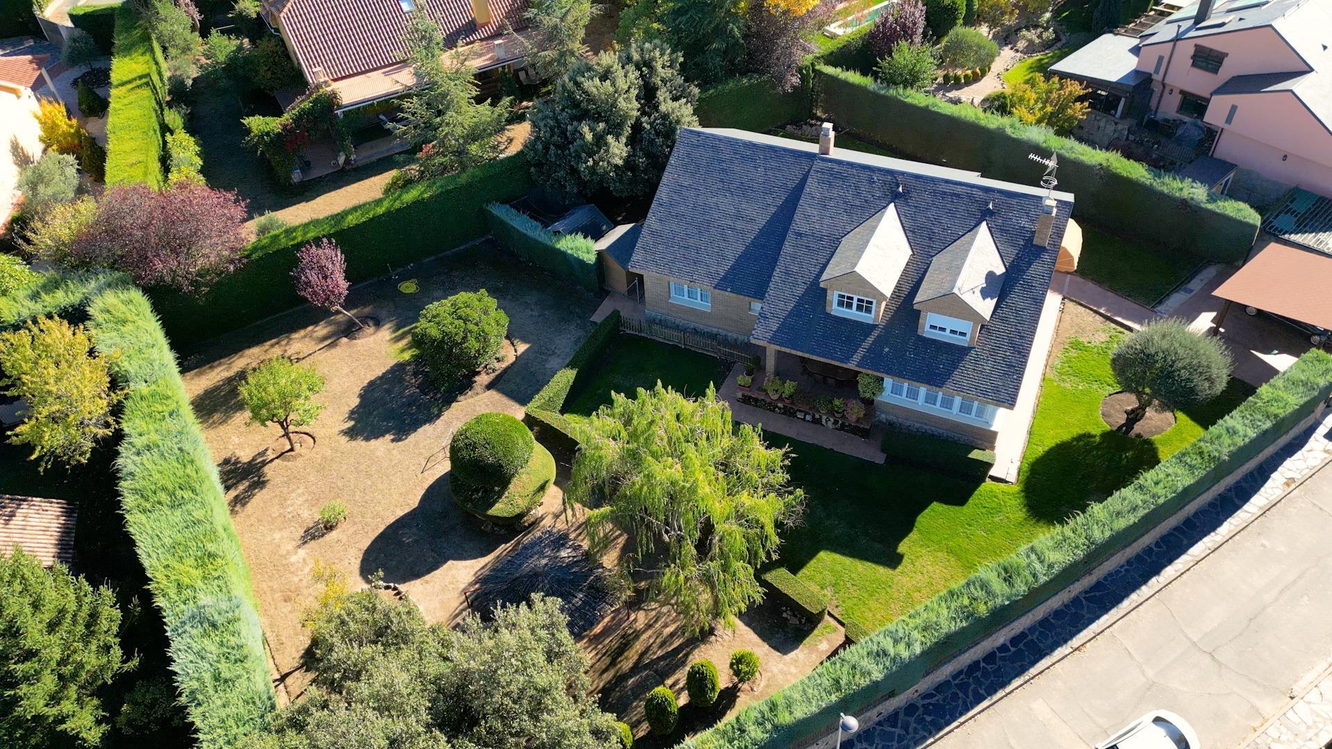 Urbanización Parque de las Infantas, Valdemorillo.- Espectacular chalet individual con parcela de 1376 metros cuadrados y construcción en dos plantas de 305 metros de superficie (todos inscritos en el Registro de la Propiedad) ubicado en la urbanización Parque de las Infantas, una zona residencial junto a un parque natural ideal para pasear o hacer deporte junto al embalse de Valmayor. .
