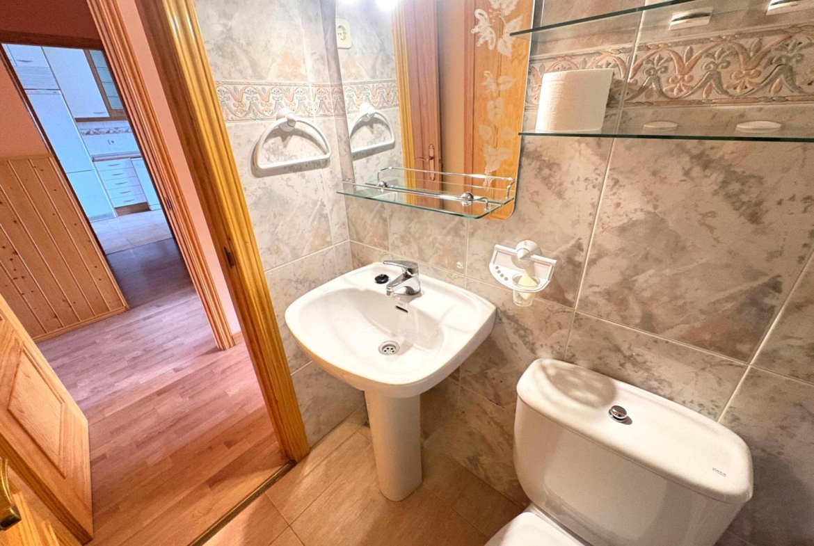 Recibidor amplio que conecta con un salón muy luminoso, ideal para reuniones familiares y momentos de descanso; Cocina totalmente equipada con electrodomésticos modernos, encimera y mobiliario en excelente estado, además de zona de comedor diario; habitación versátil, perfecta como dormitorio principal, despacho o cuarto de invitados, con armario empotrado; 1 baño completo con ducha/bañera y sanitarios en impecable estado; 2 habitaciones dobles, con armarios empotrados y gran entrada de luz natural; 1 baño completo con acabados actuales.