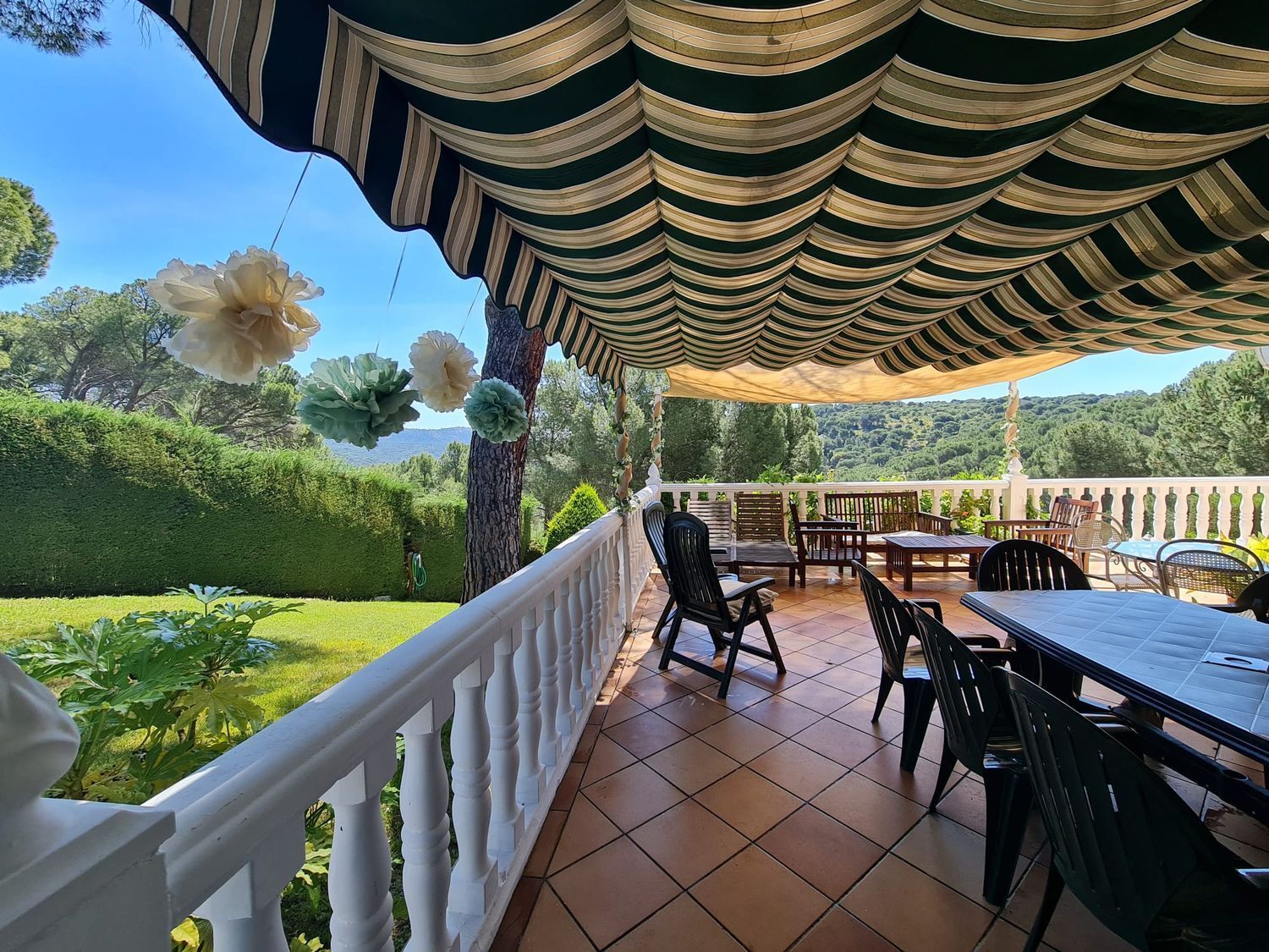 Desde el salón se accede a la terraza porche que es perfecta para veladas en primavera y verano, junto al hermoso jardín y sus vistas a zona verde del pantano.