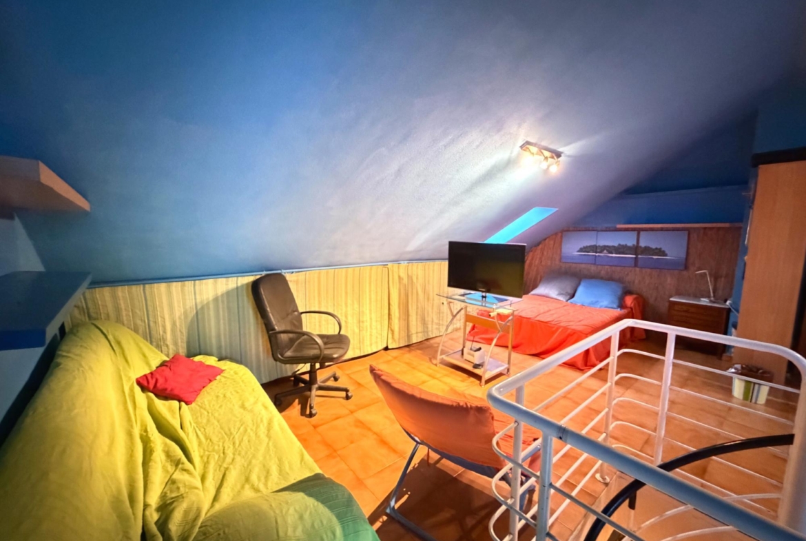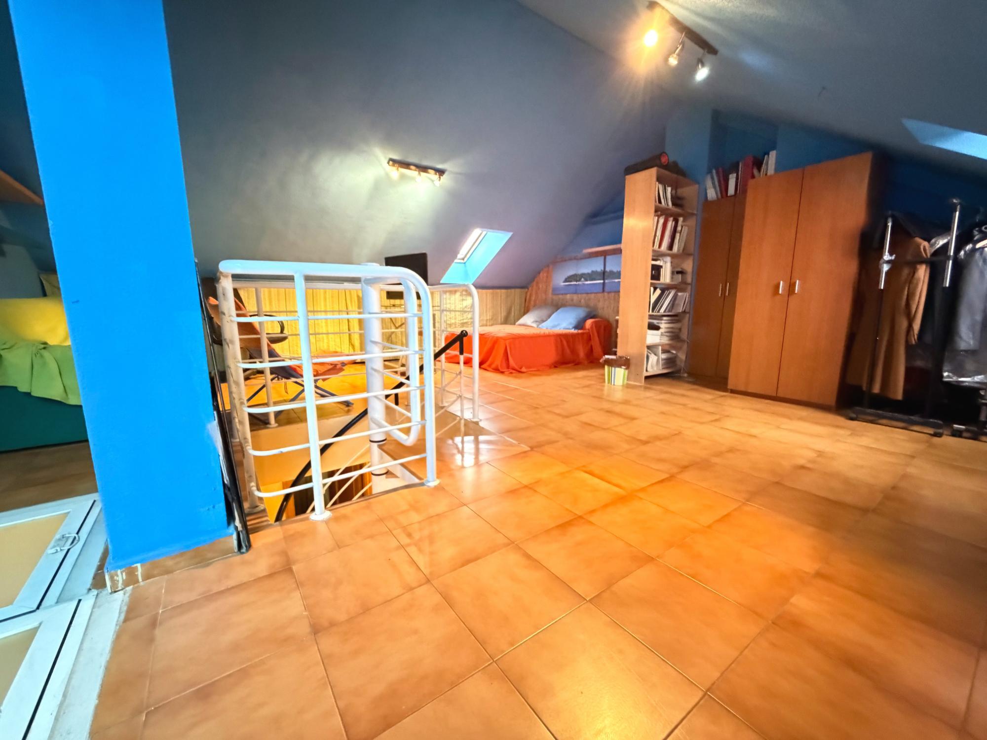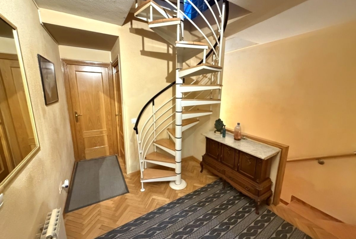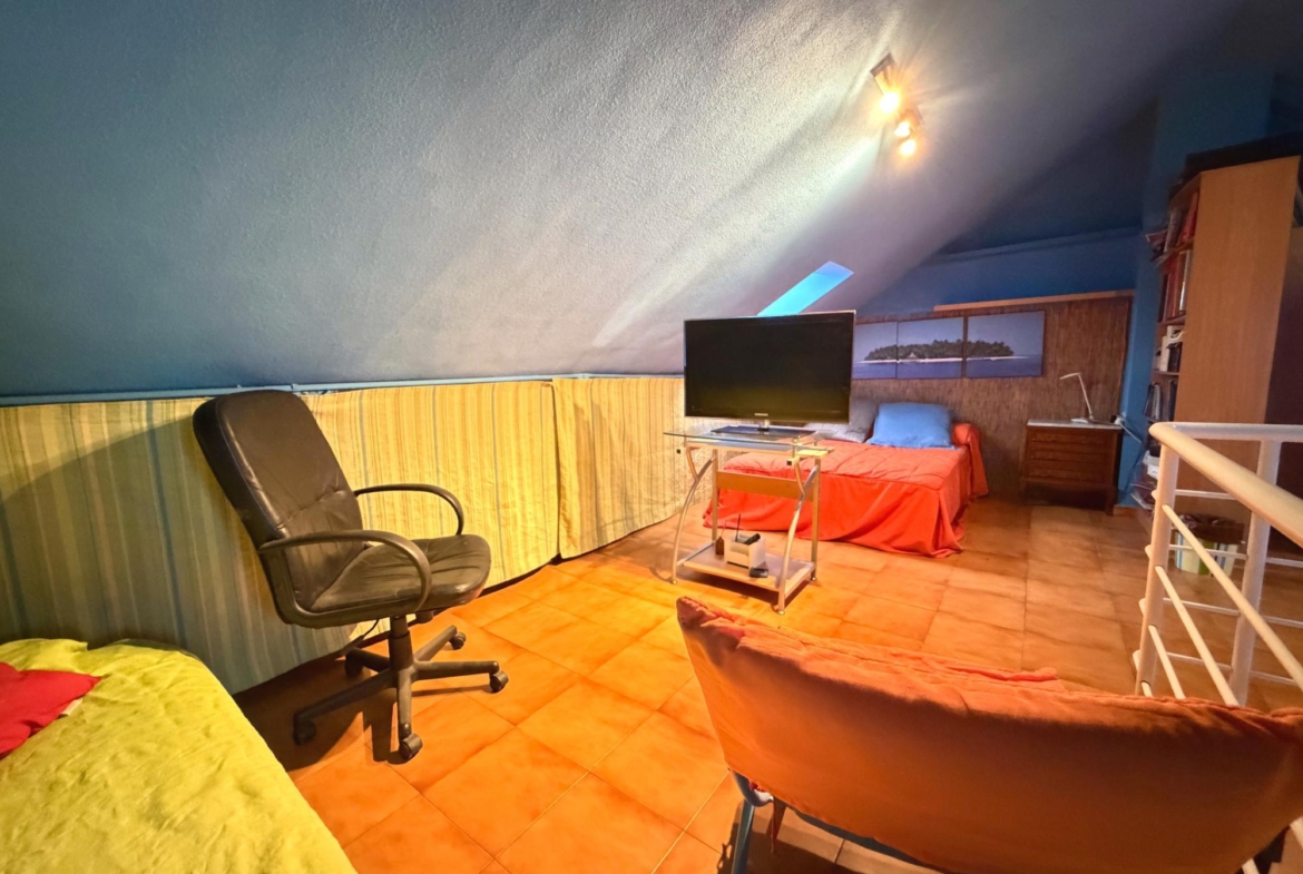 En el centro del hall se localizan unas escaleras que conducen a una amplia buhardilla, un espacio versátil ideal como sala de estar, despacho o zona de ocio.