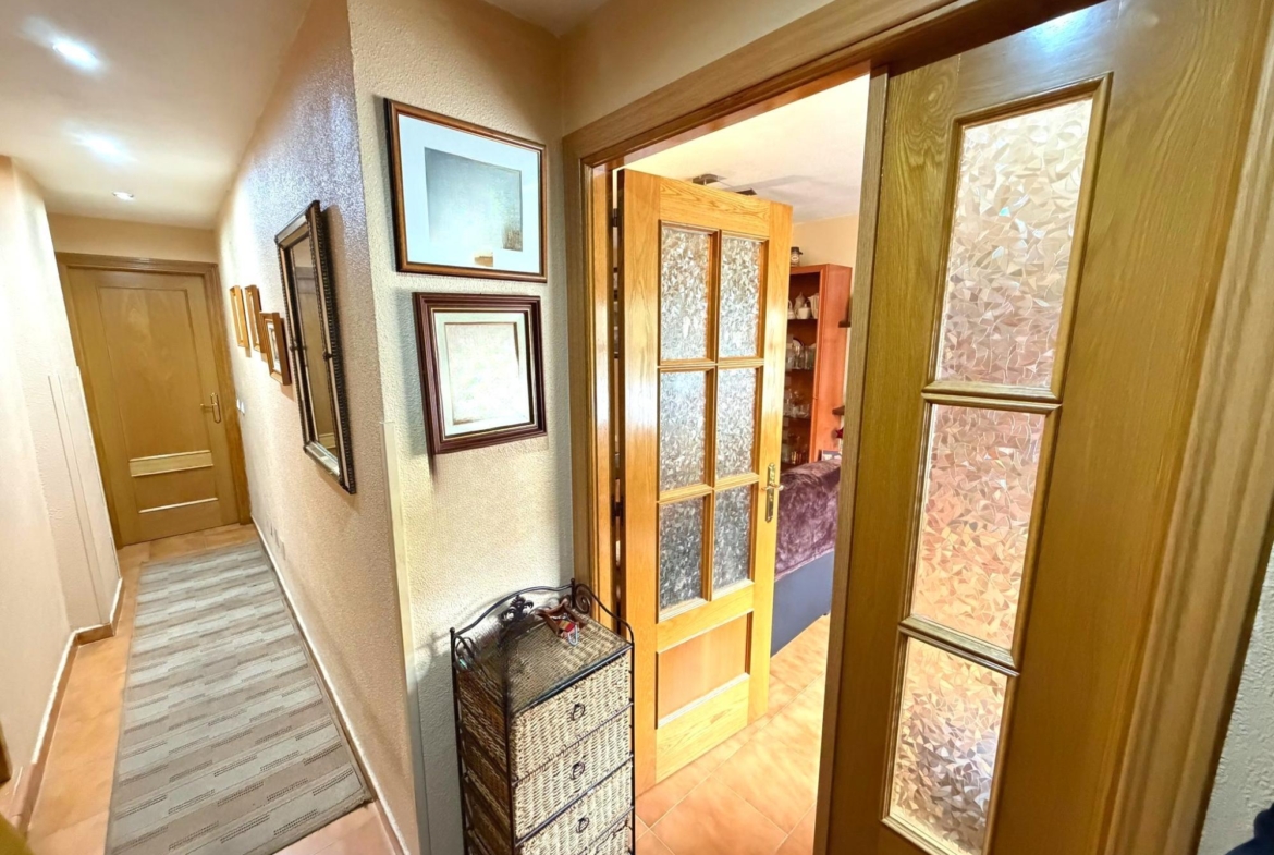Al entrar en la vivienda, a mano izquierda encontramos un aseo de cortesía, mientras que a la derecha se sitúa un amplio y luminoso salón-comedor, perfecto para el día a día y para disfrutar de reuniones familiares. Junto al salón se dispone un pasillo con escalera que comunica con las plantas superiores.