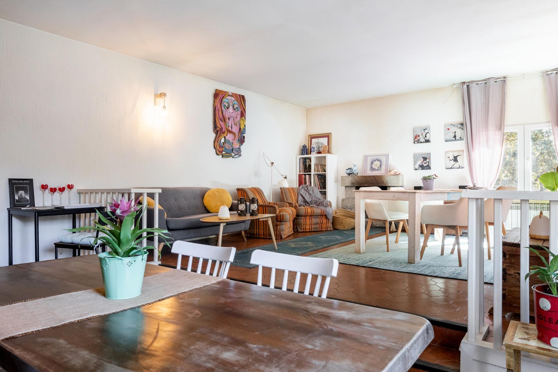 La casa de 189 metros comparte espacio holgadamente con cuatro cabañas de madera totalmente independientes que pueden destinarse tanto a uso privado como a uso profesional. Su ultimo uso como alquiler rural permitía a los propietarios de esta vivienda desarrollar una actividad comercial para así generar ingresos extras. Cada cabaña de 30 metros cuadrados cuenta con camas dobles, chimenea, baño y un pequeño porche.