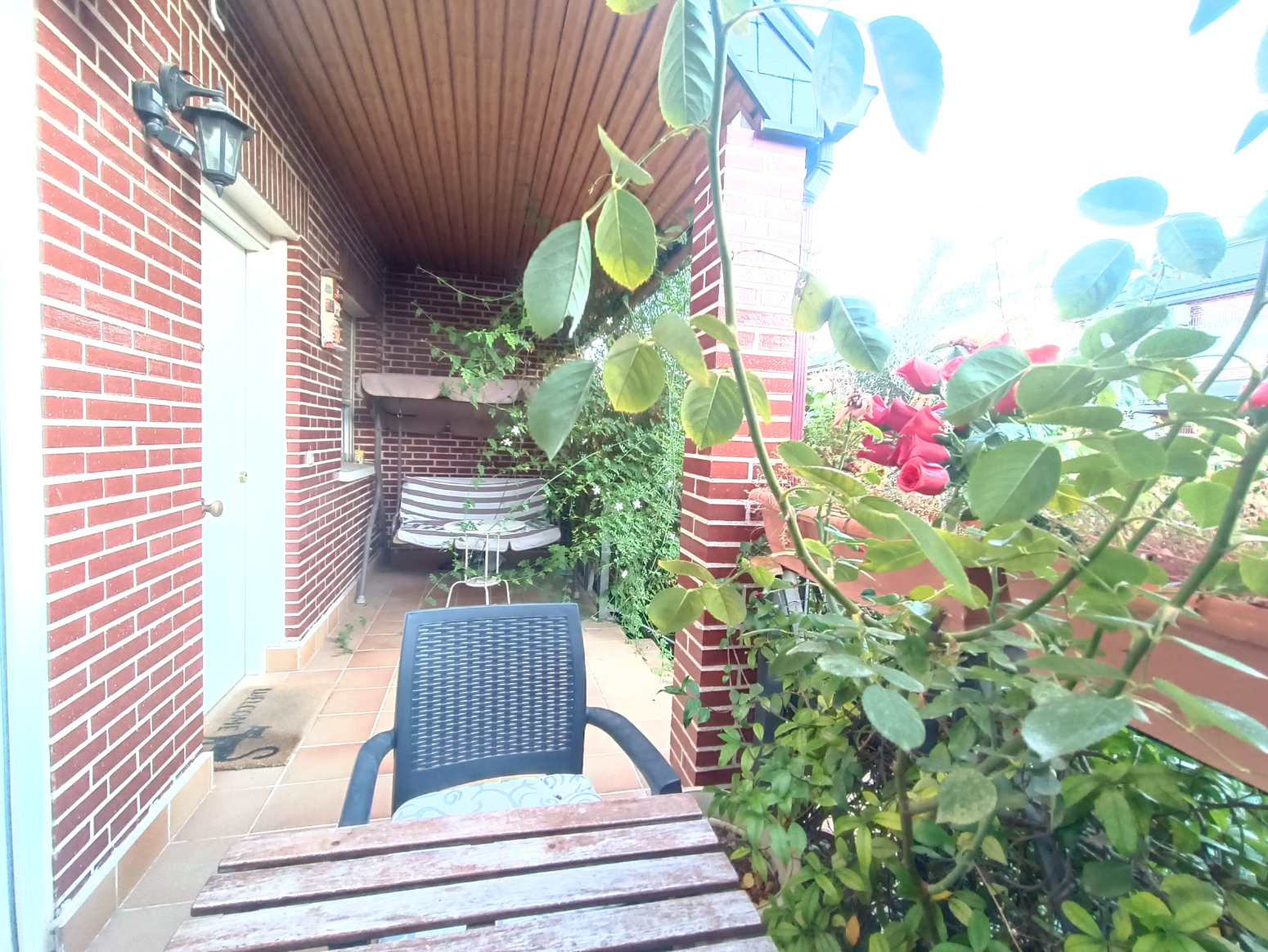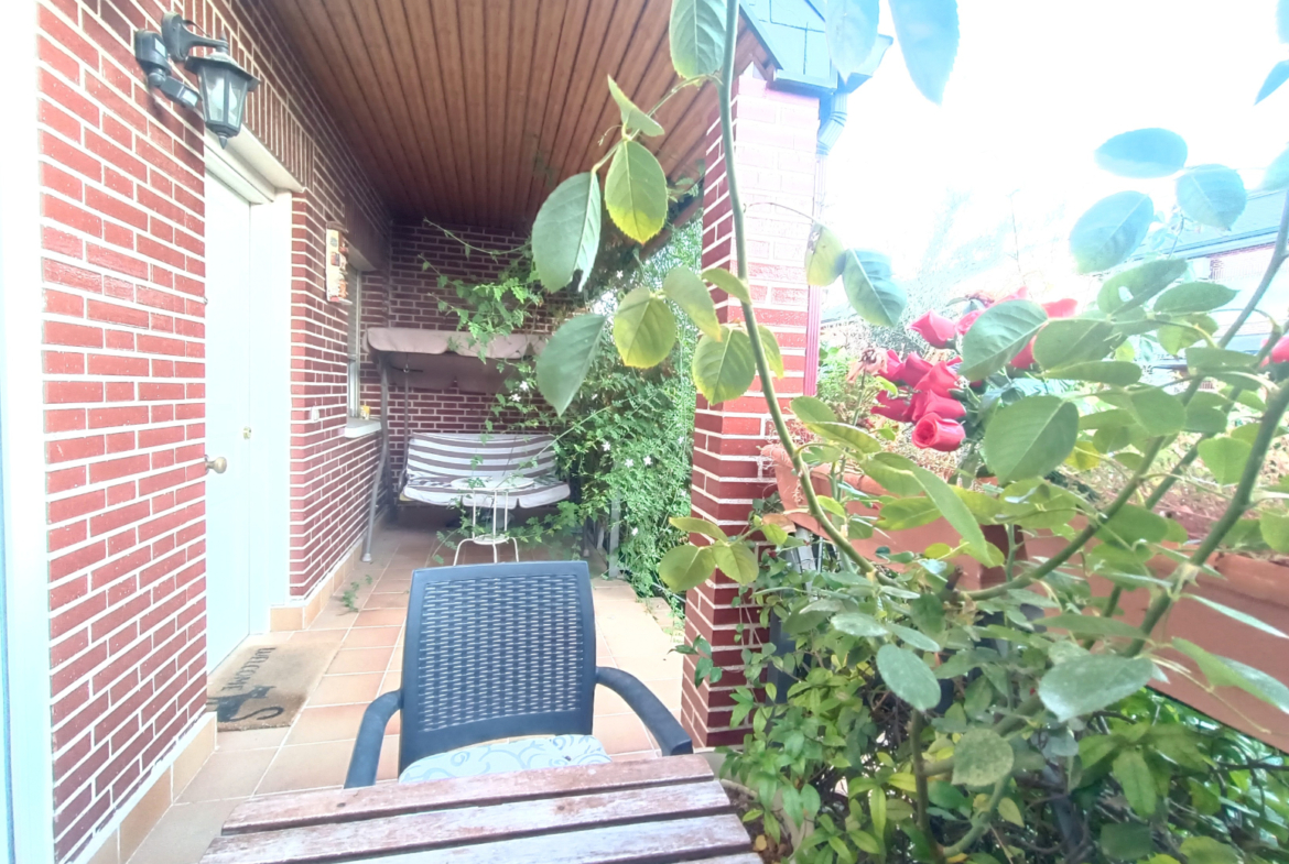 La casa presume de un hermoso balcón que ofrece vistas despejadas hacia la zona ajardinada que rodea la vivienda, perfecto para disfrutar de momentos al aire libre.