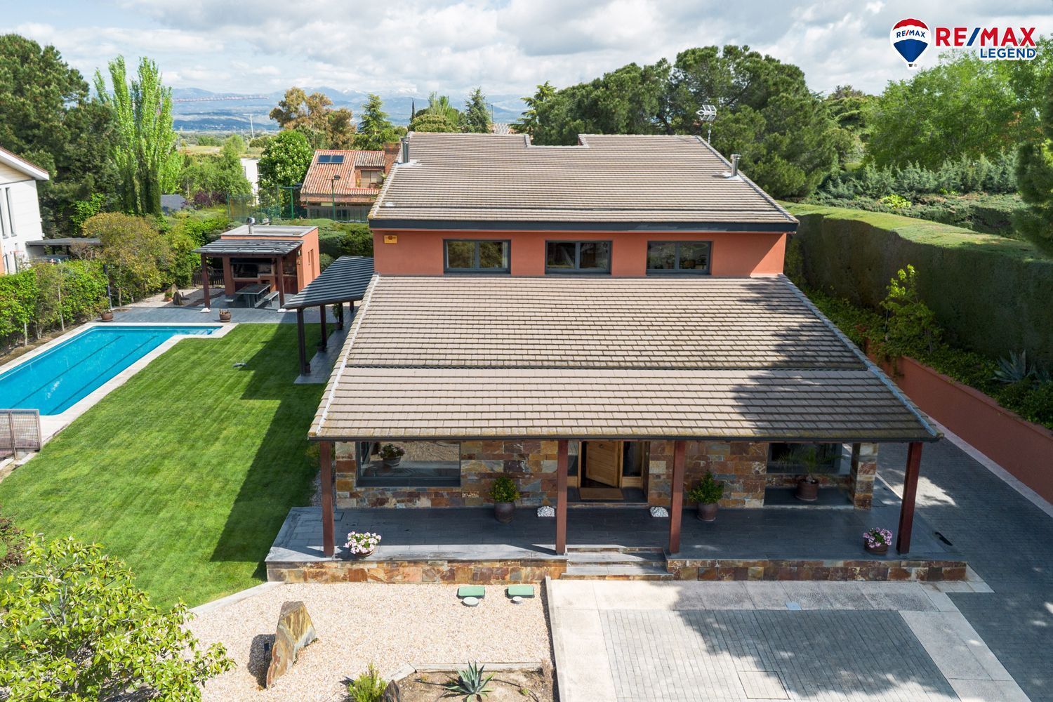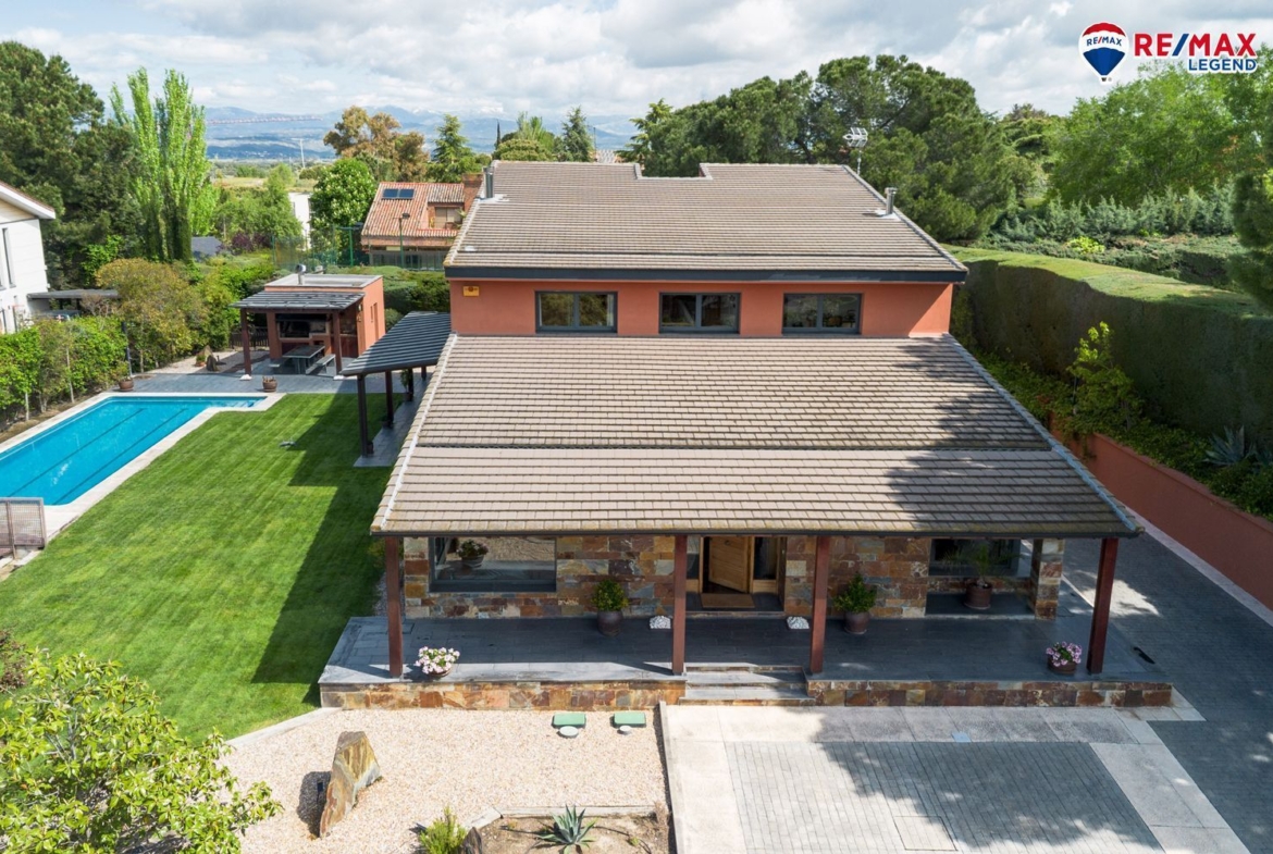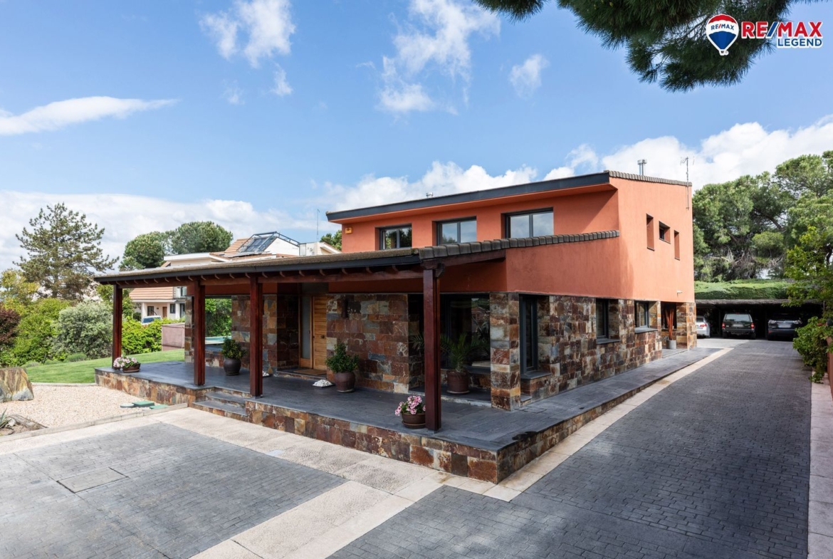 Construido en el año 2002, este chalet cuenta con 523 m² construidos distribuidos en tres plantas, sobre una amplia parcela de 2.300 m². La vivienda destaca por su diseño arquitectónico cuidado y techos altos, que refuerzan la sensación de amplitud y luminosidad en todos los espacios.