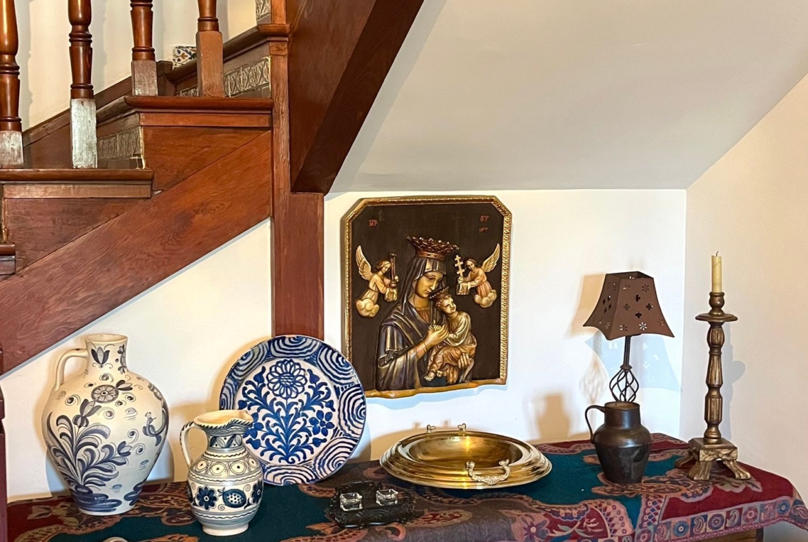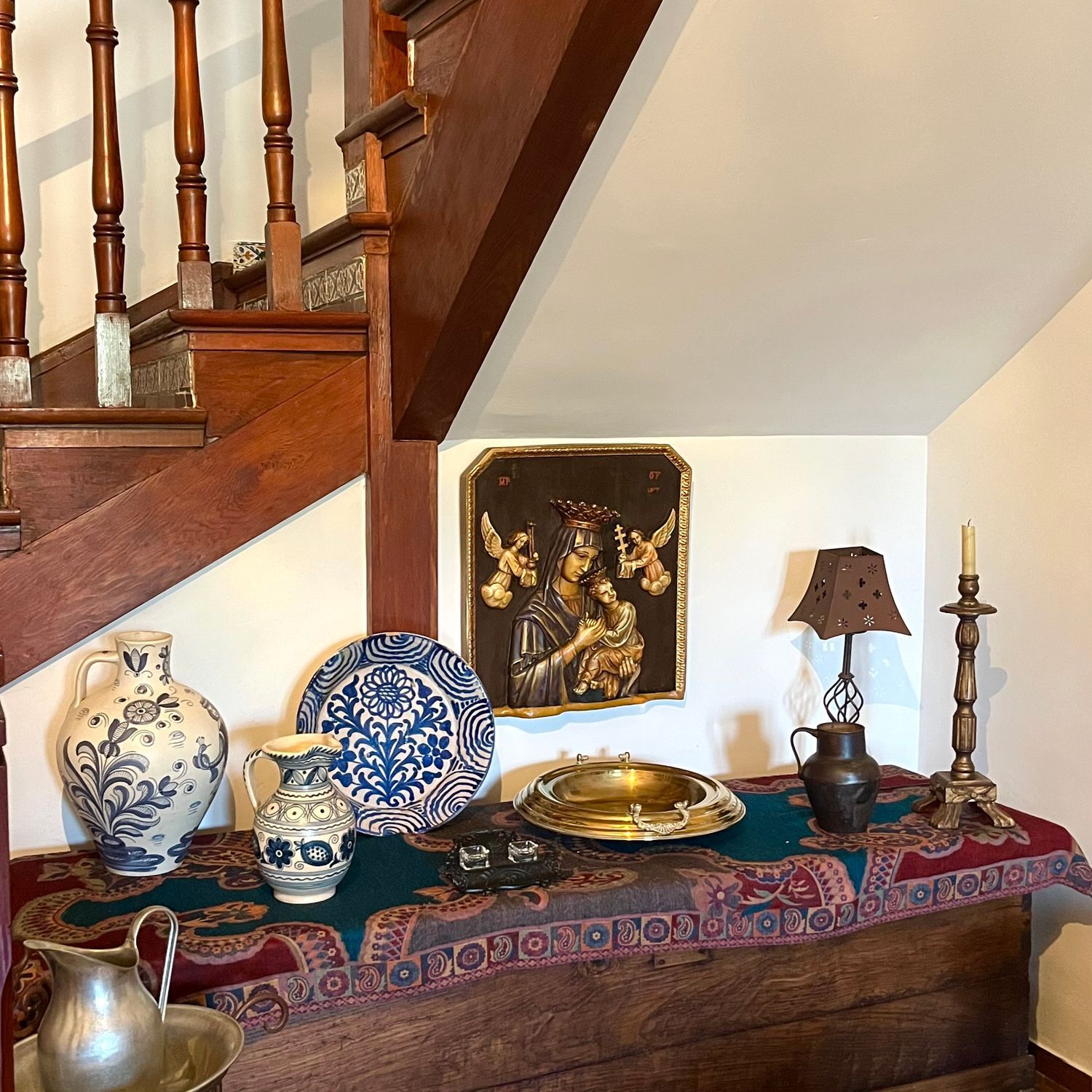 La entrada majestuosa de este auténtico Cigarral con portón de hierro forjado, detalles ornamentales y flanqueado por columnas de piedra, evoca la nobleza y solidez de estas fincas antiguas en Toledo que a la sazón ha sido residencia de una gran familia toledana.