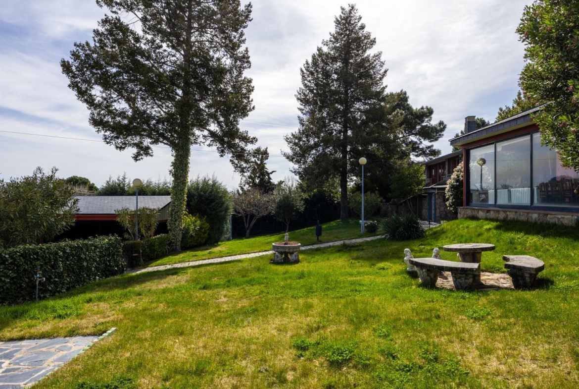El gran jardín compartido es perfecto para disfrutar de momentos al aire libre, mientras que la zona de barbacoa promete inolvidables asados en familia. Con un garaje que tiene capacidad para varios vehículos, el acceso es cómodo y práctico. Este entorno tranquilo en las afueras de Guadarrama te permitirá disfrutar de la naturaleza sin renunciar a la proximidad a los servicios del pueblo.