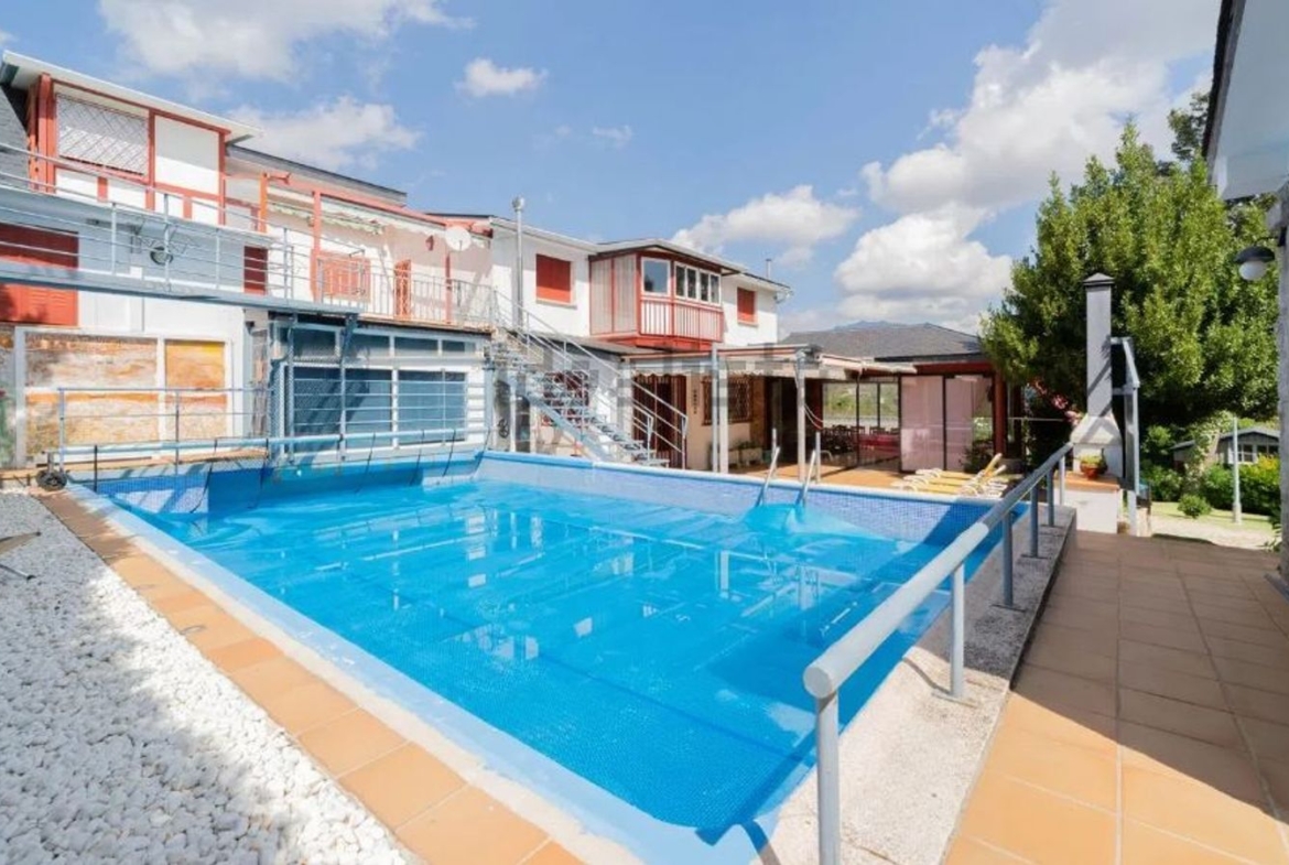 -La primera vivienda. Esta amplia propiedad en Guadarrama cuenta con 13 dormitorios y 4 baños distribuidos en 189 m² en dos plantas. El interior presenta una mezcla de estilos, desde techos rústicos de madera hasta modernos baños con azulejos. Varias salas de estar, incluyendo una gran sala y salas de estar y comedor independientes, ofrecen amplio espacio para la relajación y el entretenimiento. La propiedad cuenta con tres cocinas, una notablemente larga y estrecha con suelos de color amarillo brillante. Los dormitorios varían en diseño, algunos con colores cálidos y otros con una decoración más neutra. Entre los elementos únicos se incluyen vidrieras, estanterías empotradas y diversos detalles arquitectónicos en todo el espacio.