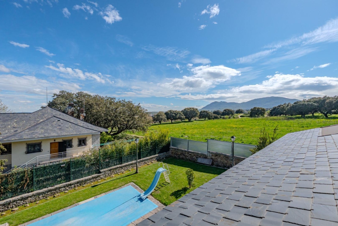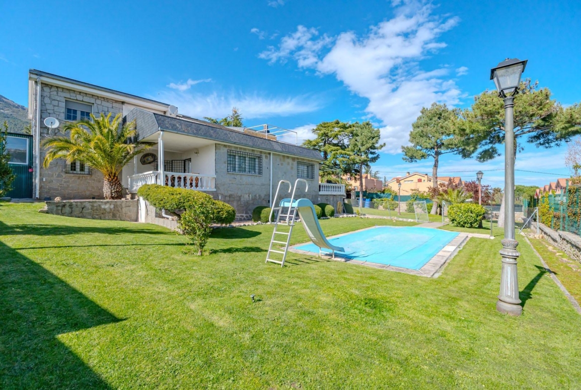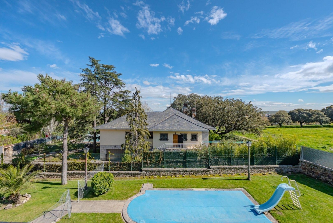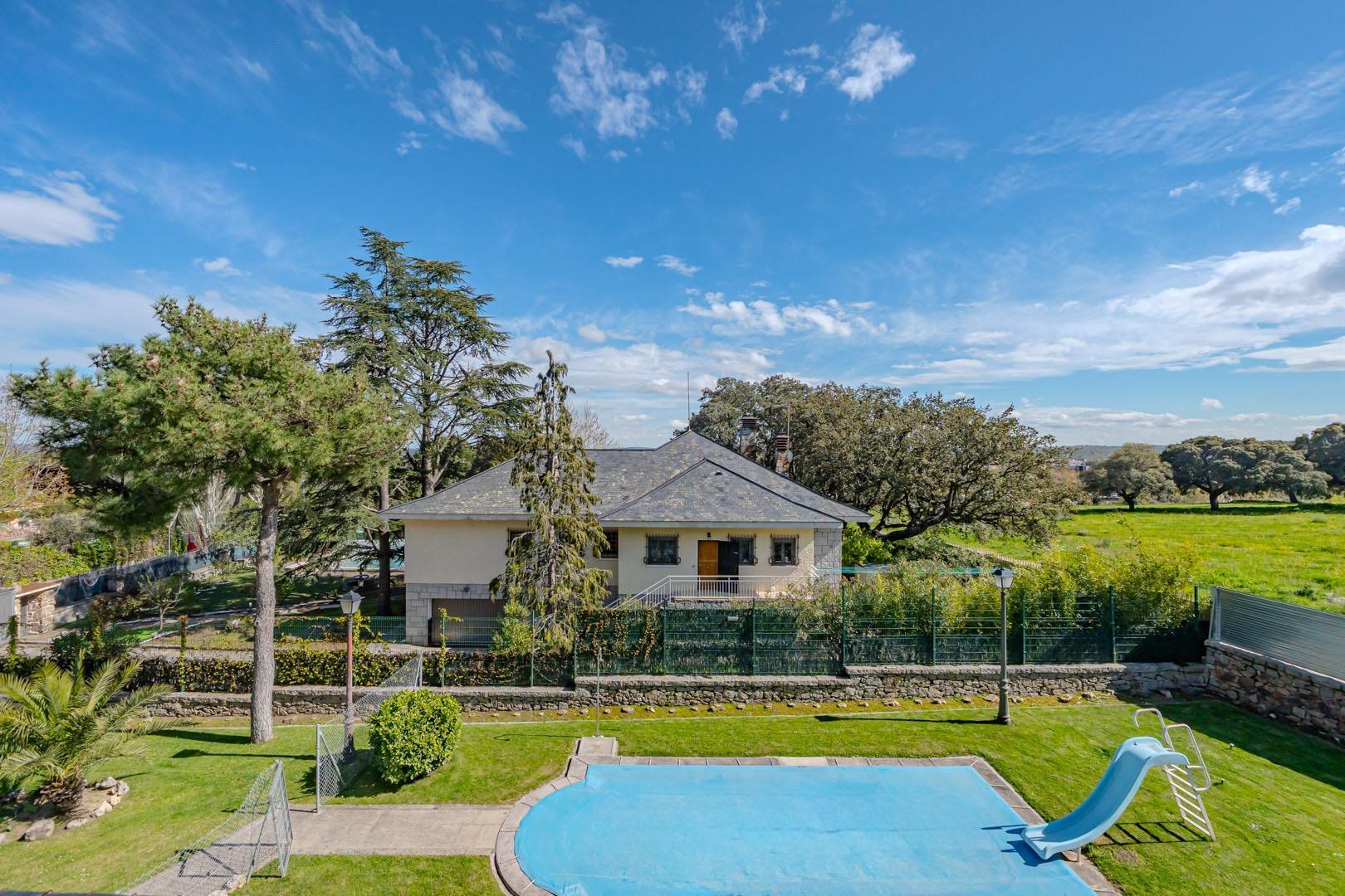 Presentamos este exclusivo chalet independiente ubicado en la prestigiosa zona de El Escorial, una propiedad de grandes dimensiones con un diseño único, distribuido en tres plantas y con un hermoso jardín que incluye piscina y una parcela perfectamente perimetrada con muro de piedra.
