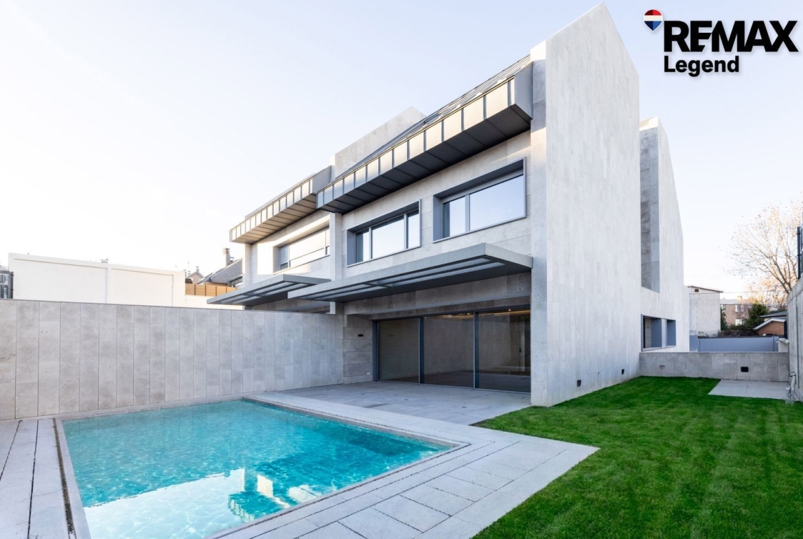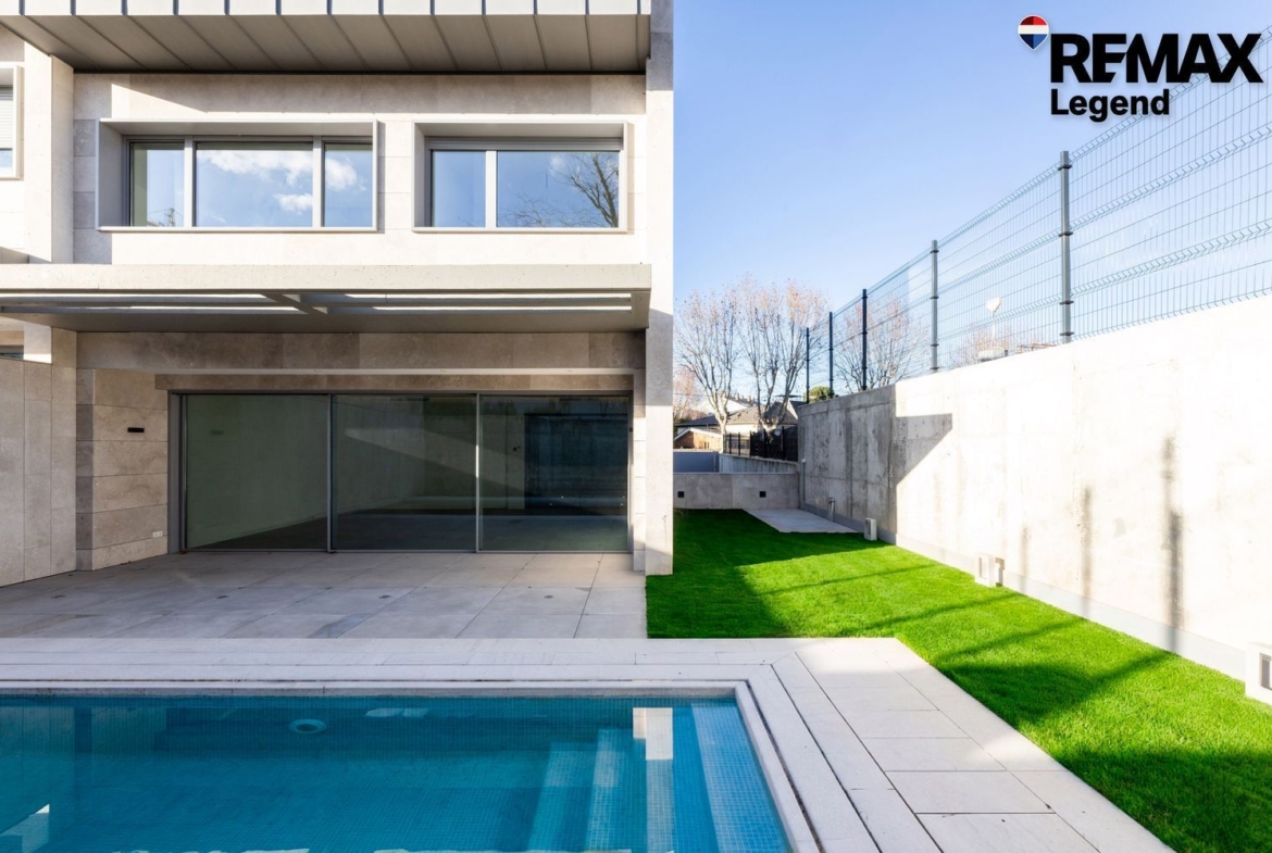 La vivienda destaca por su arquitectura contemporánea, grandes ventanales y materiales de alta calidad. El jardín privado con piscina crea un espacio perfecto para disfrutar al aire libre con total privacidad.