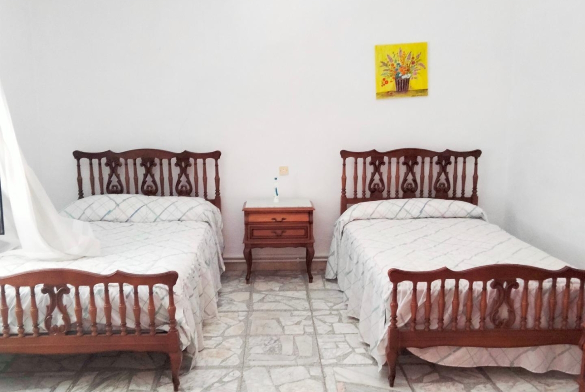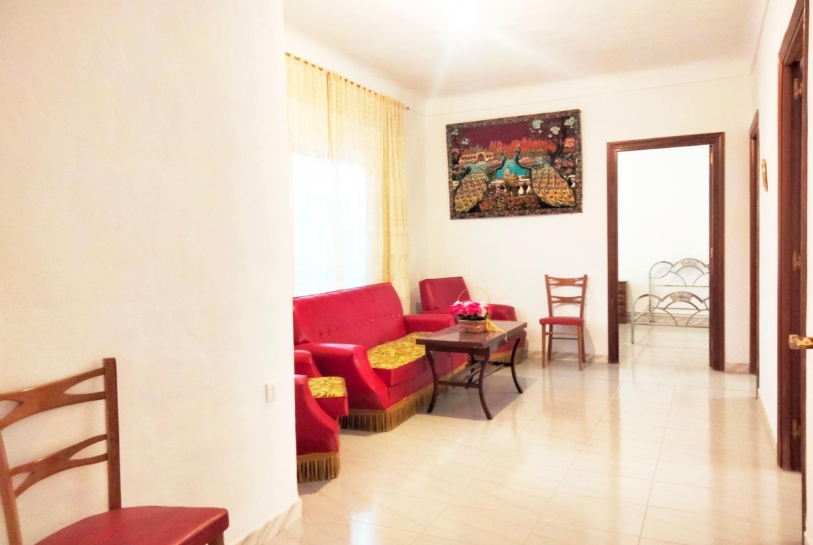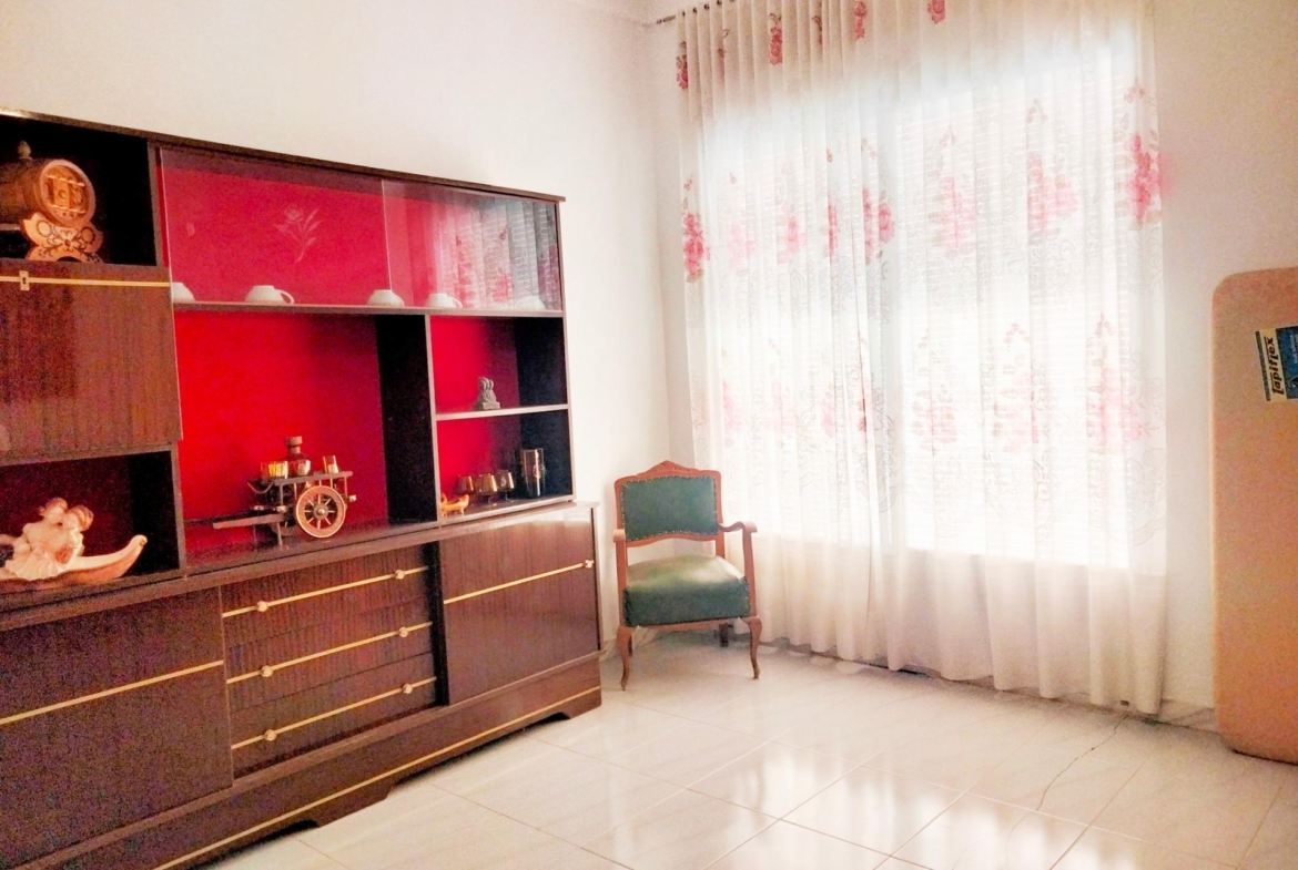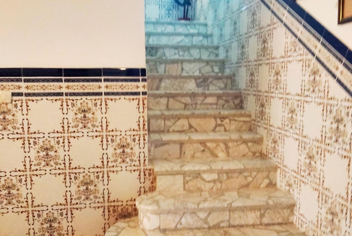 En la planta baja de la vivienda encontradas una amplía entrada y distribuidor, salón, dos dormitorios, baño completo con ducha, una patio cubierto mediante el que se accede a la amplia cocina con suficiente espacio para disponer un comedor en ella y escaleras para acceder al trastero de la planta superior y al patio de la vivienda. Desde este podemos acceder a la calle y, como ya hemos comentado, también podemos acceder directamente al solar anexo que cuenta con salida independiente a la calle. Este solar tiene unas edificaciones usadas como almacenes aunque la mayoría de la superficie está natural.