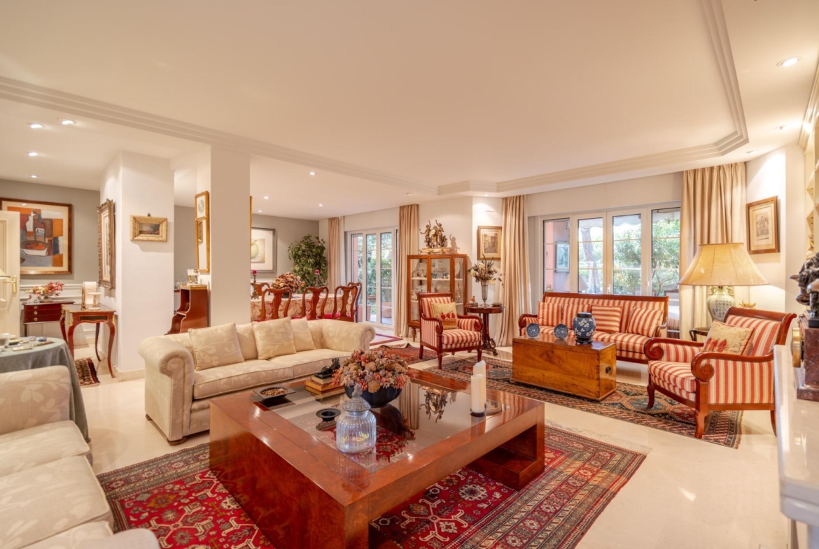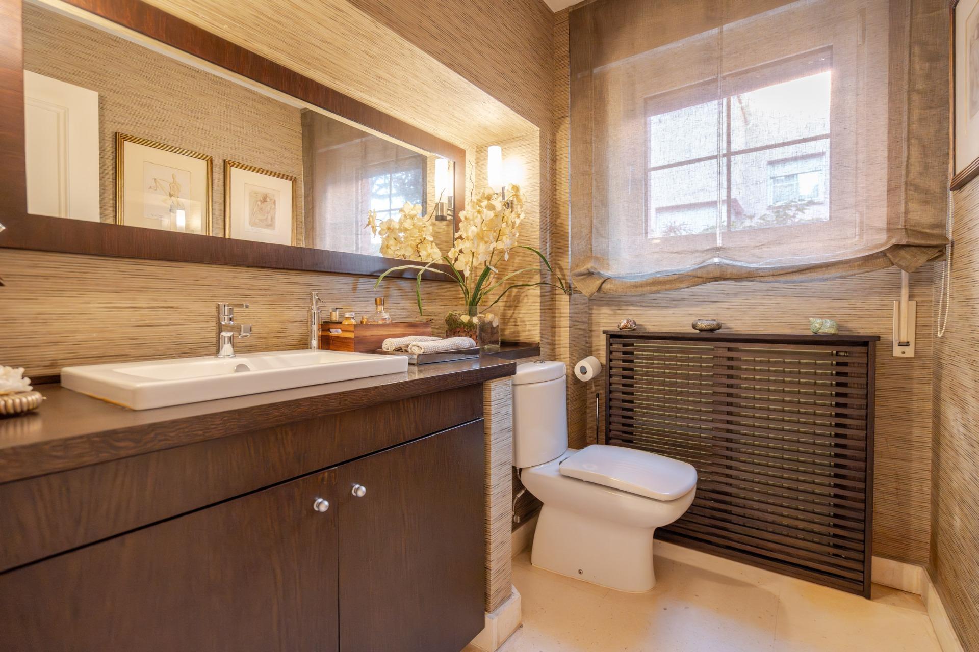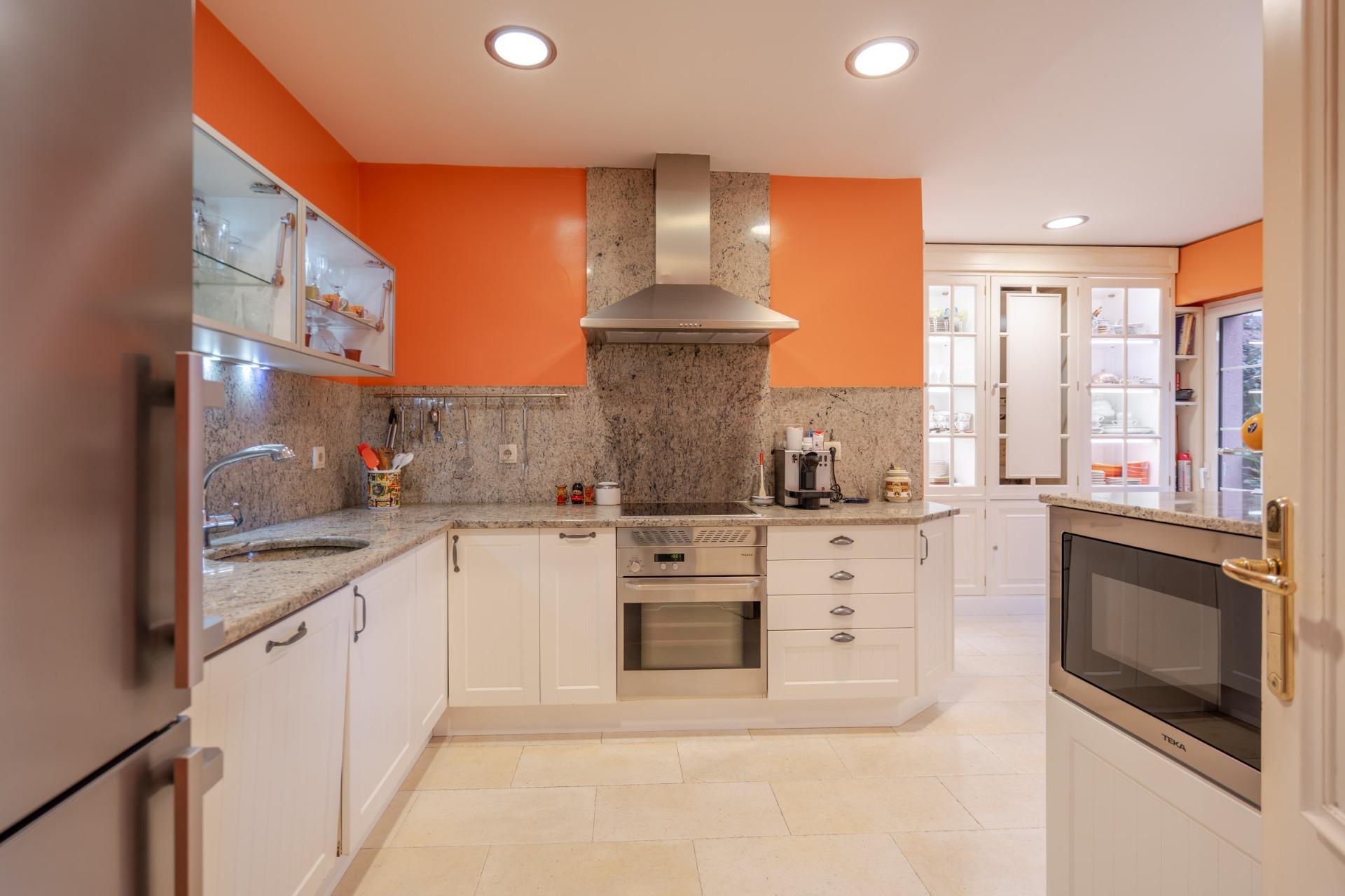 En la planta baja, el chalet ofrece un espacioso y luminoso salón comedor con grandes ventanales y salida directa a la terraza y al jardín. La terraza, techada y distribuida en dos ambientes, constituye un espacio perfecto para crear una zona de estar y un comedor exterior, garantizando el disfrute durante todo el año. La amplia cocina, con zona de desayuno y lavandería, también conecta con la terraza, facilitando su uso diario y el aprovechamiento de las zonas exteriores. En esta misma planta se encuentra una habitación polivalente que puede ser utilizada como dormitorio de invitados, despacho o sala de estar, lo que aporta gran versatilidad a la distribución. Un aseo de cortesía y un garaje privado con capacidad para dos vehículos completan la planta baja.