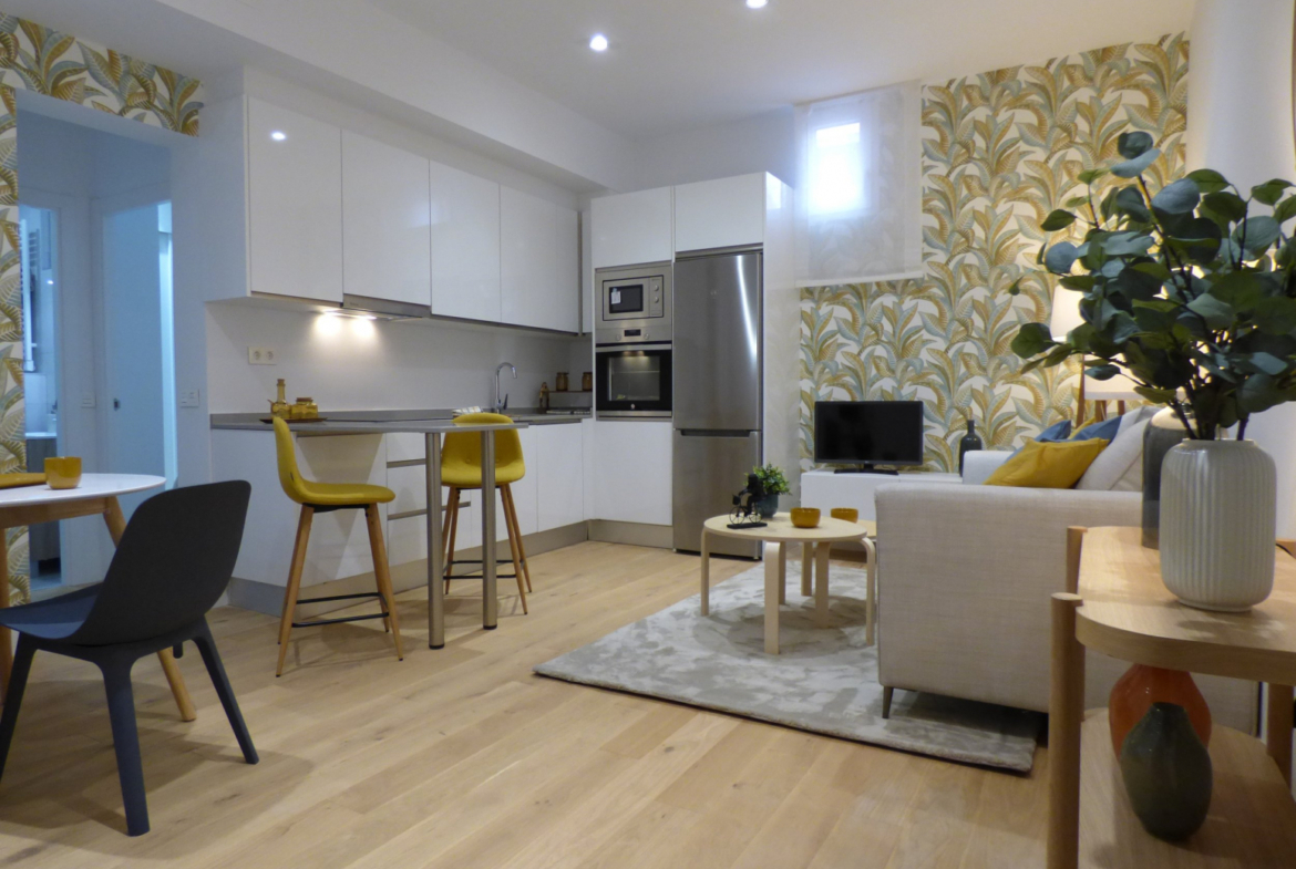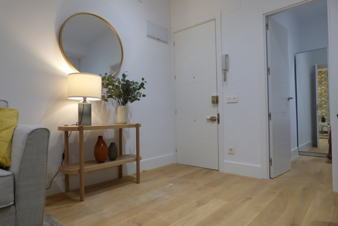 DIRECTAMENTE DE LA PROPIEDAD!! Magnífica zona, ideal inversores o primera vivienda. Precioso piso A ESTRENAR en 2ª planta interior, edificio clásico con ascensor, magníficas calidades y de diseño. Opcional AMUEBLADO. Zona Mercado de la Cebada. Tiene barreras arquitectónicas (1 tramo de escaleras al salir del ascensor) 54m2 construidos y 50m2 de vivienda según catastro. En registro aparecen 36,34 m2 Muy cuadrada no pierde metros, Salón con cocina americana completamente amueblada y equipada con electrodomésticos (nevera combi, horno, micro, vitro, campana lavavajillas y lavadora). 2 dormitorios dobles, Baño con ducha y dos ventanas. Carpintería exterior aluminio con climalit y oscilobatiente. persianas eléctricas. Suelos tarima, pintura lisa. Calefacción de calor azul y bomba frío calor por conductos en toda la vivienda. Gastos comunidad: 80 euros/mes. IBI 285 euros/año. Muy bien comunicado, METRO: La latina (linea 5) y Tirso de Molina (línea 2)