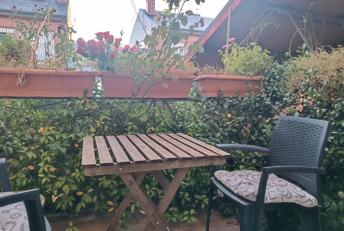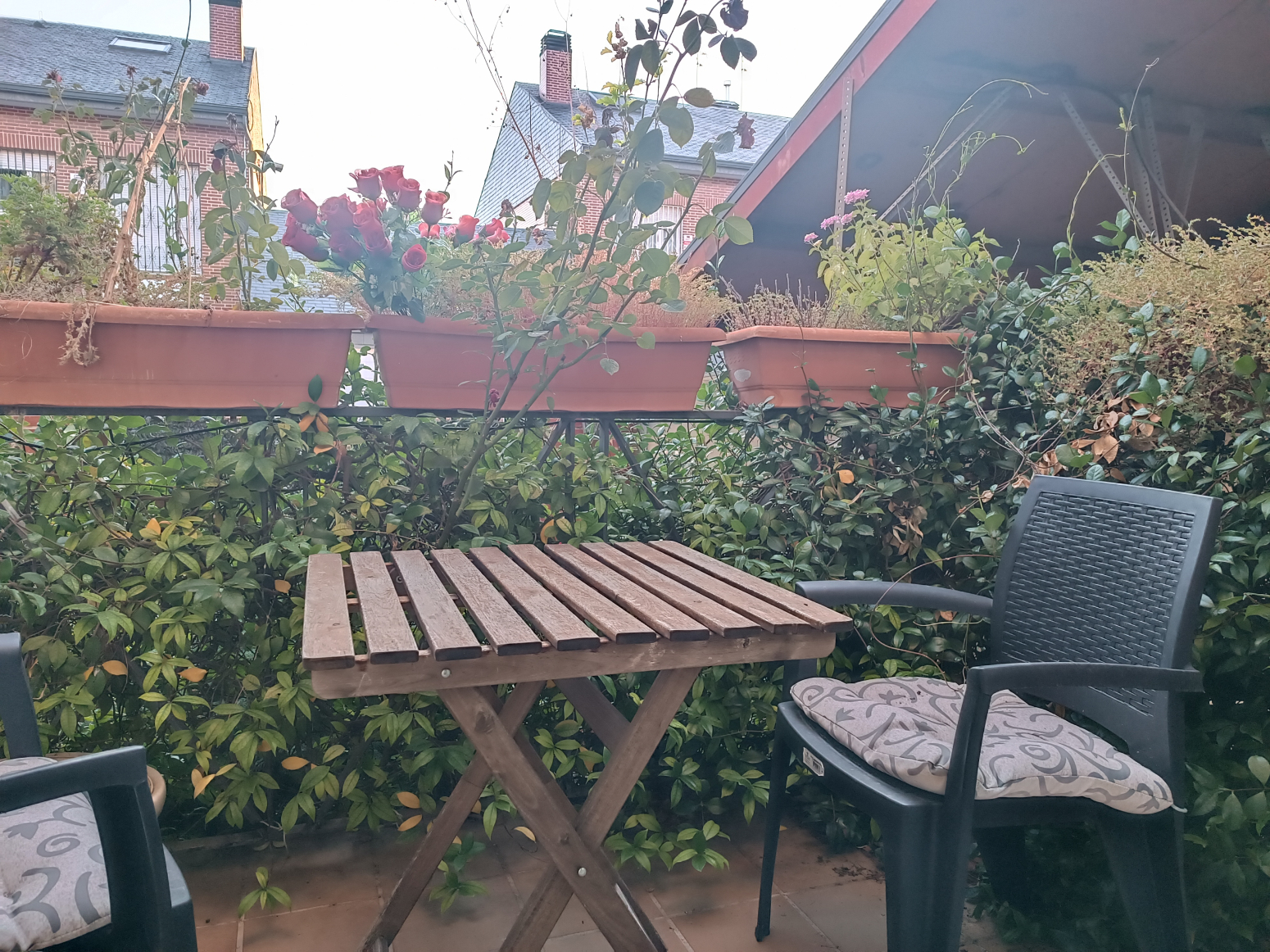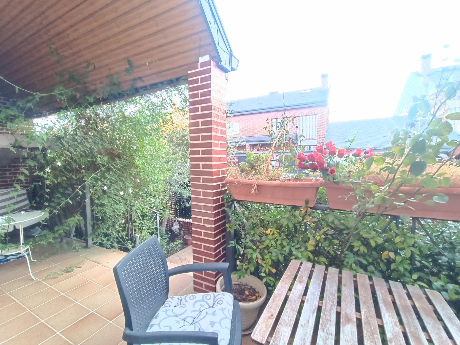 La casa presume de un hermoso balcón que ofrece vistas despejadas hacia la zona ajardinada que rodea la vivienda, perfecto para disfrutar de momentos al aire libre.