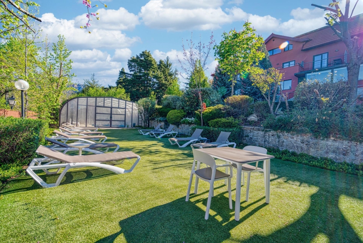 Situado en el Parque Nacional de la Sierra de Guadarrama, el hotel cuenta con 14 habitaciones dobles, piscina climatizada, restaurante, sala de reuniones, salón con chimenea, terraza con vistas panorámicas y un extenso jardín.