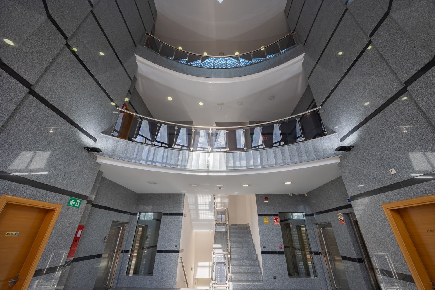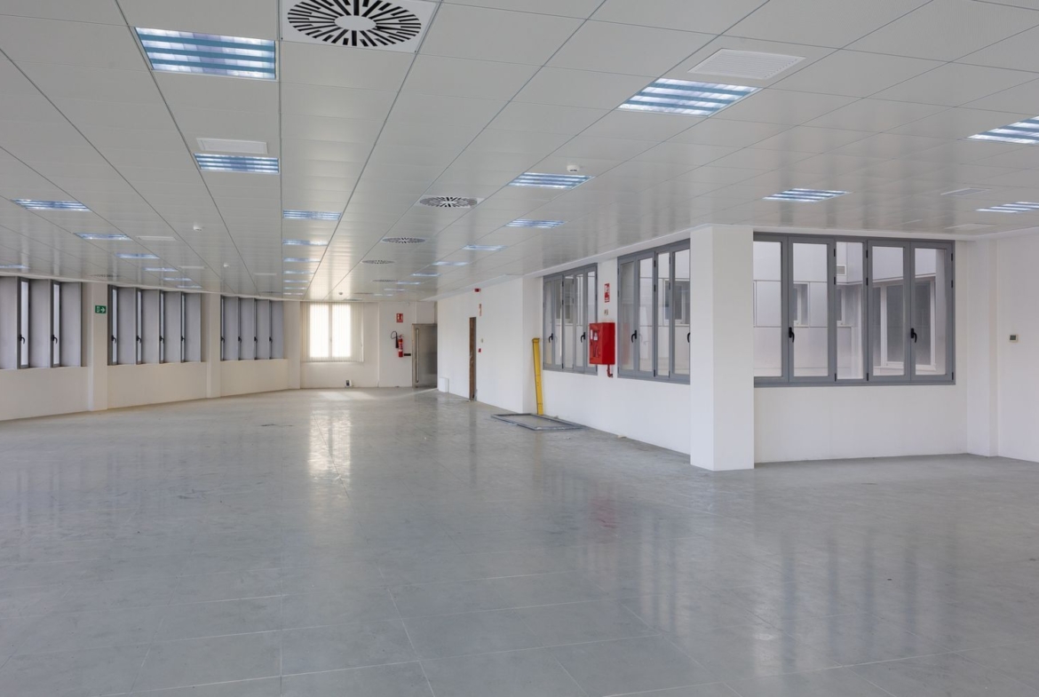 -750m2 diáfanos, repartidos en dos alas, cuenta con separaciones de mampara y cristal para tres despachos grandes, cuatro pequeños, sala de consejos y sala polivalente.