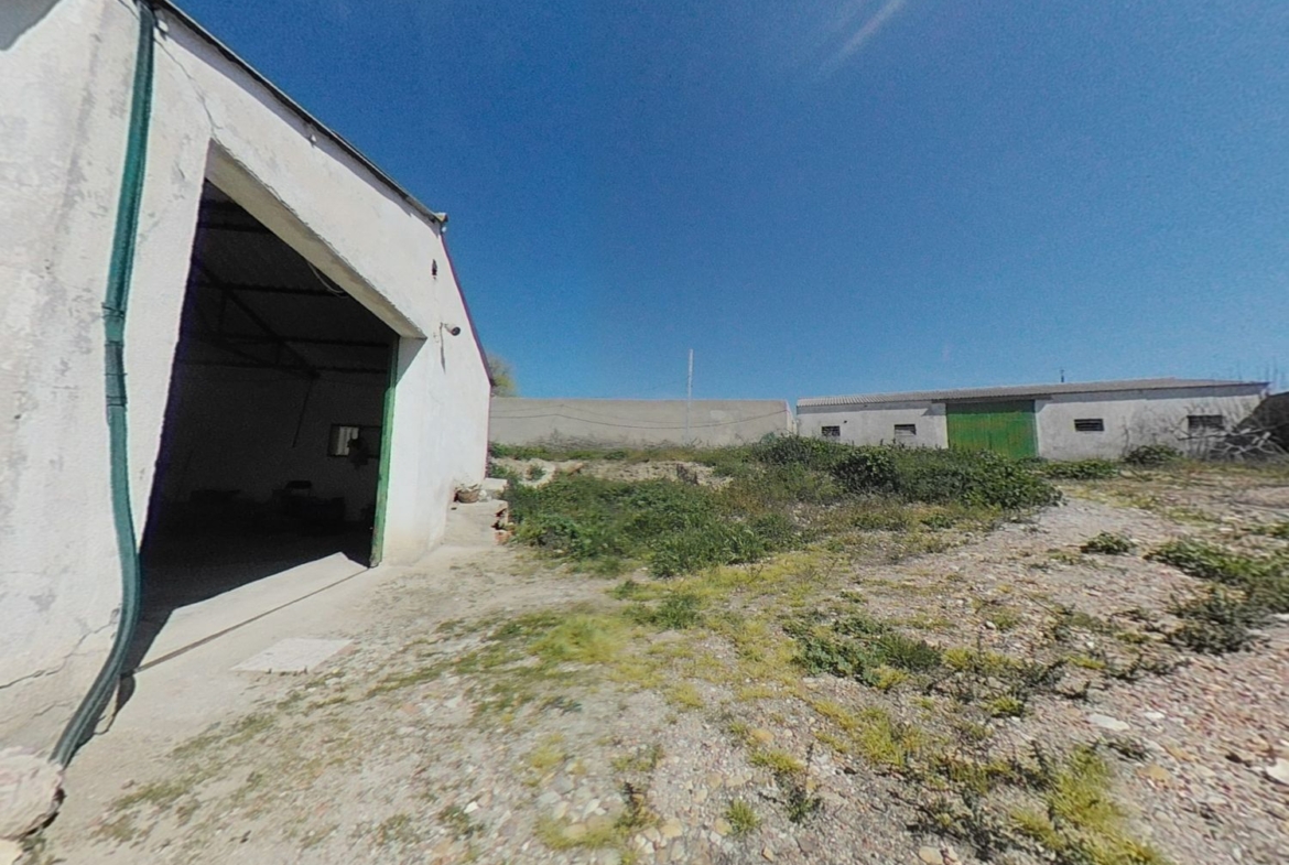 En la actualidad el solar dispone de diversas edificaciones como son una vivienda, almacén, dos naves industriales y un pozo.