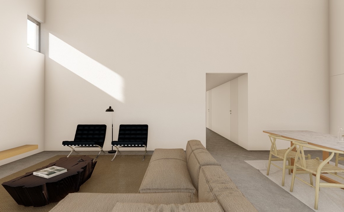 – Carpintería interior de madera lacada en blanco y puertas enrrasadas a pared con marco oculto.