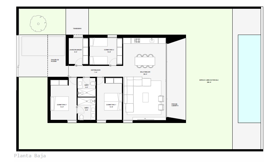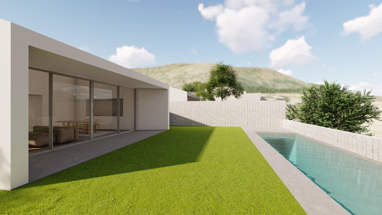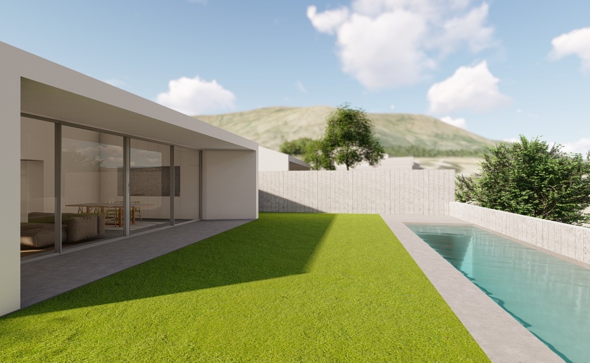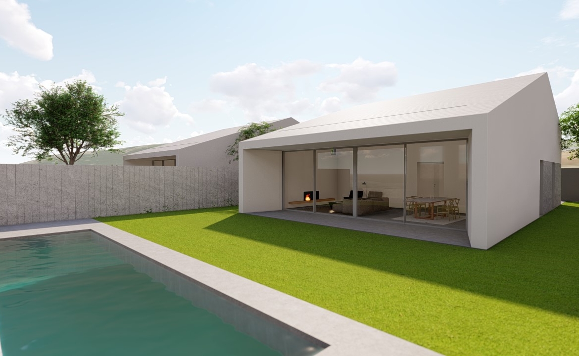 La promotora construirá este moderno chalet de una sola planta y 135 m2, construida sobre una parcela de 405 m2, Consta de 3 dormitorios y 2 cuartos de baño, uno de ellos en suite en el dormitorio principal.
