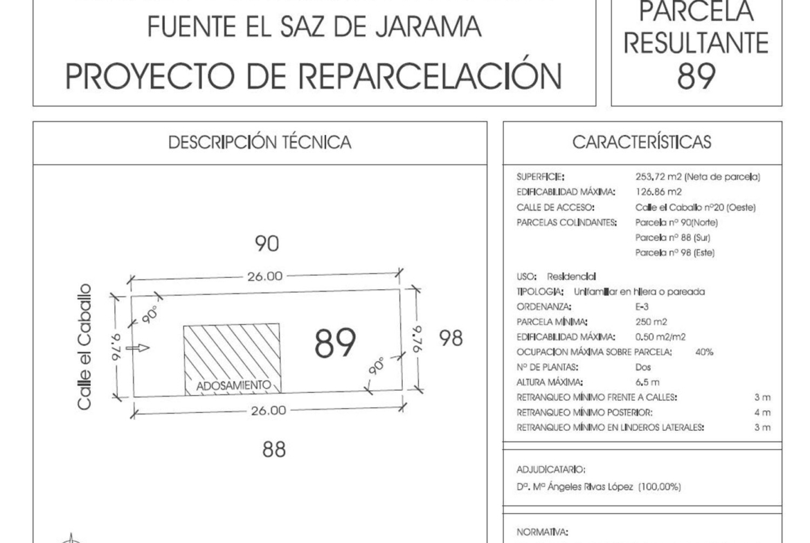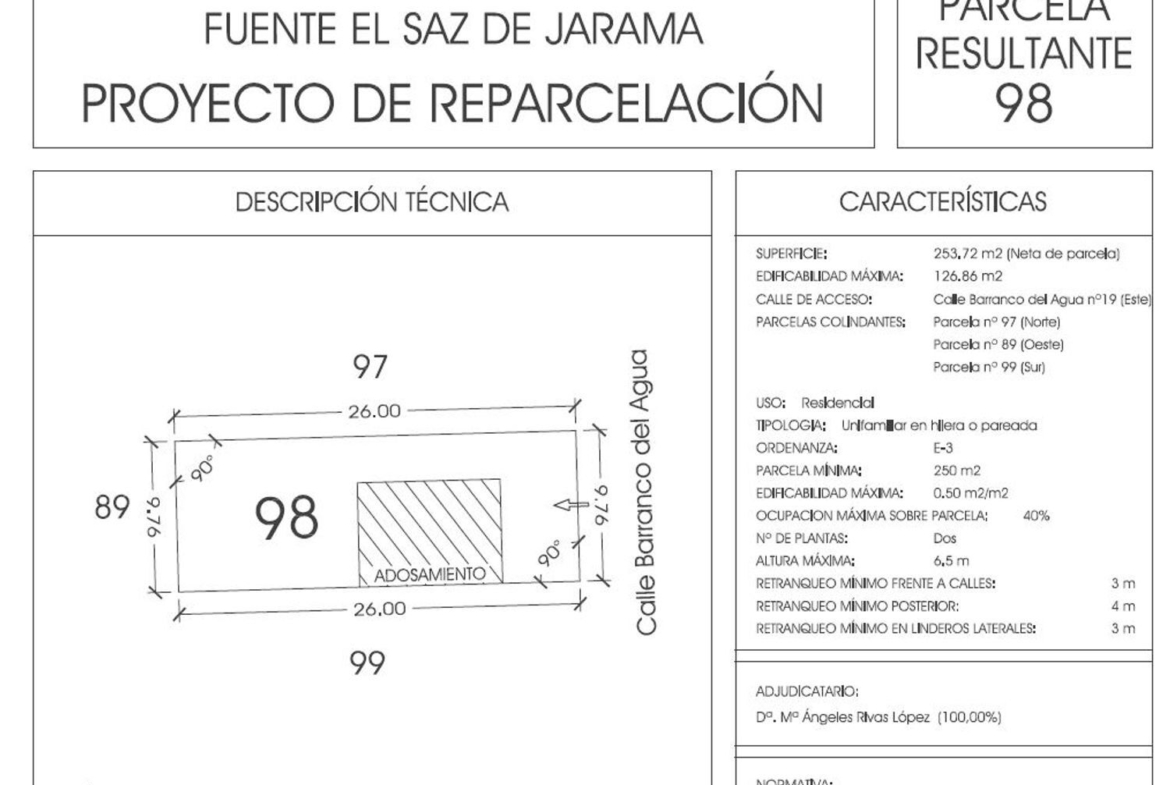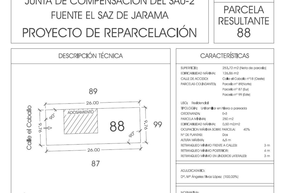 Se venden 8 parcelas, el precio de venta está calculado de manera individual. Cada parcela cuenta con una superficie de 254m2, ubicadas en la manzana 7 de la junta de compensación del SAU-2, en Fuente el Saz de Jarama. Se trata de una urbanización proyectada para un total de 295 viviendas y 2 zonas comerciales.