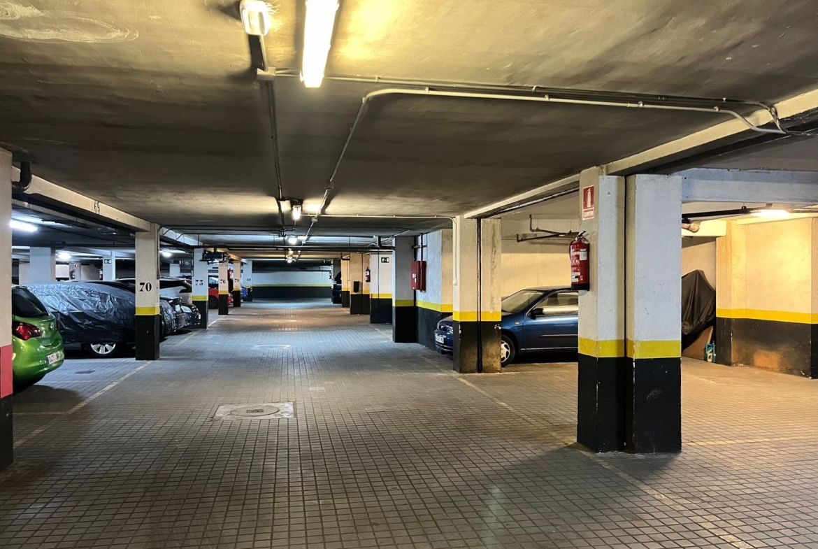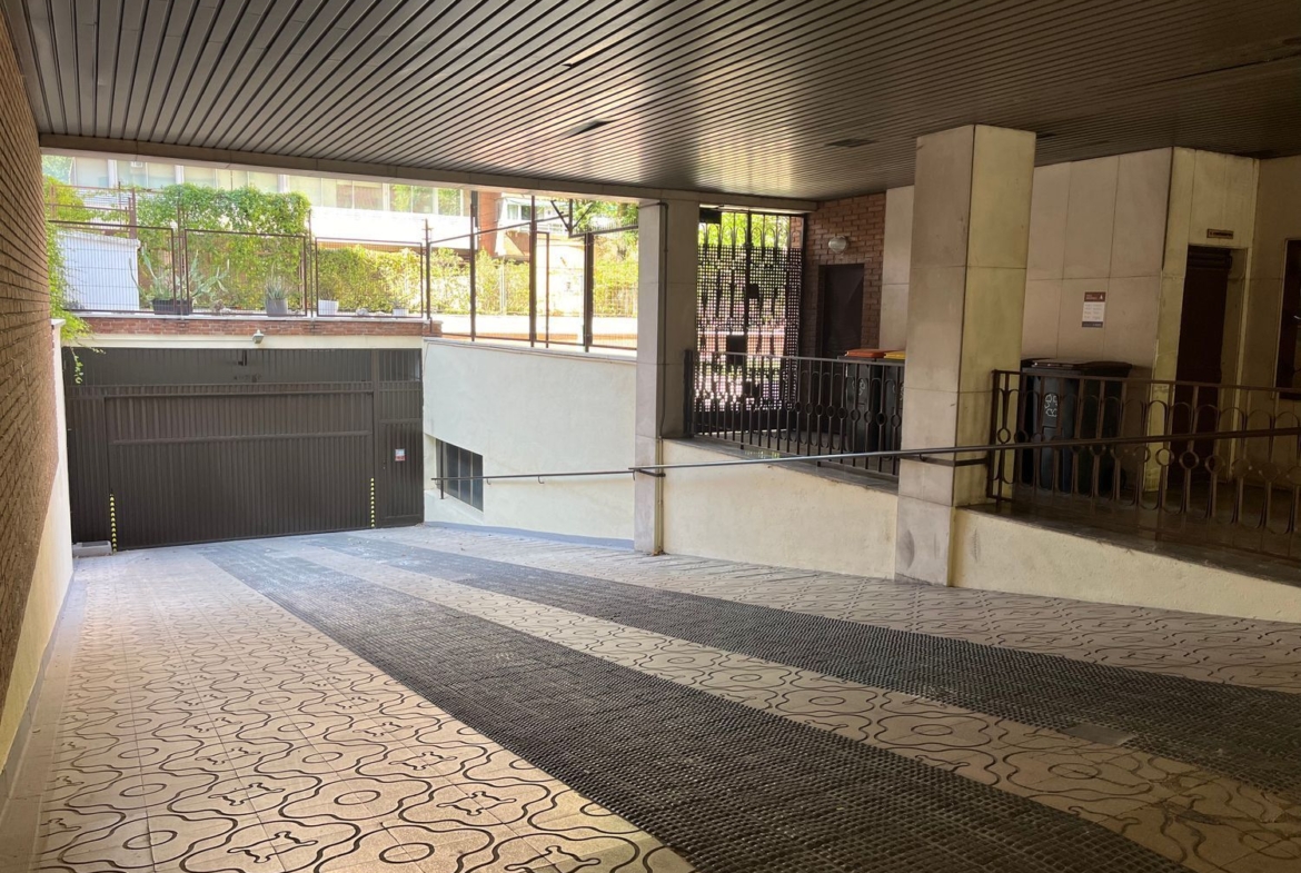 Plaza de garaje doble en segundo sótano con fácil acceso y maniobra (22 m2 útiles). Caben fácilmente coche y moto, o 2 coches de tamaño medio, en fila uno detrás de otro. Puerta automática con mando a distancia. Hay conserje y ascensor en la finca.