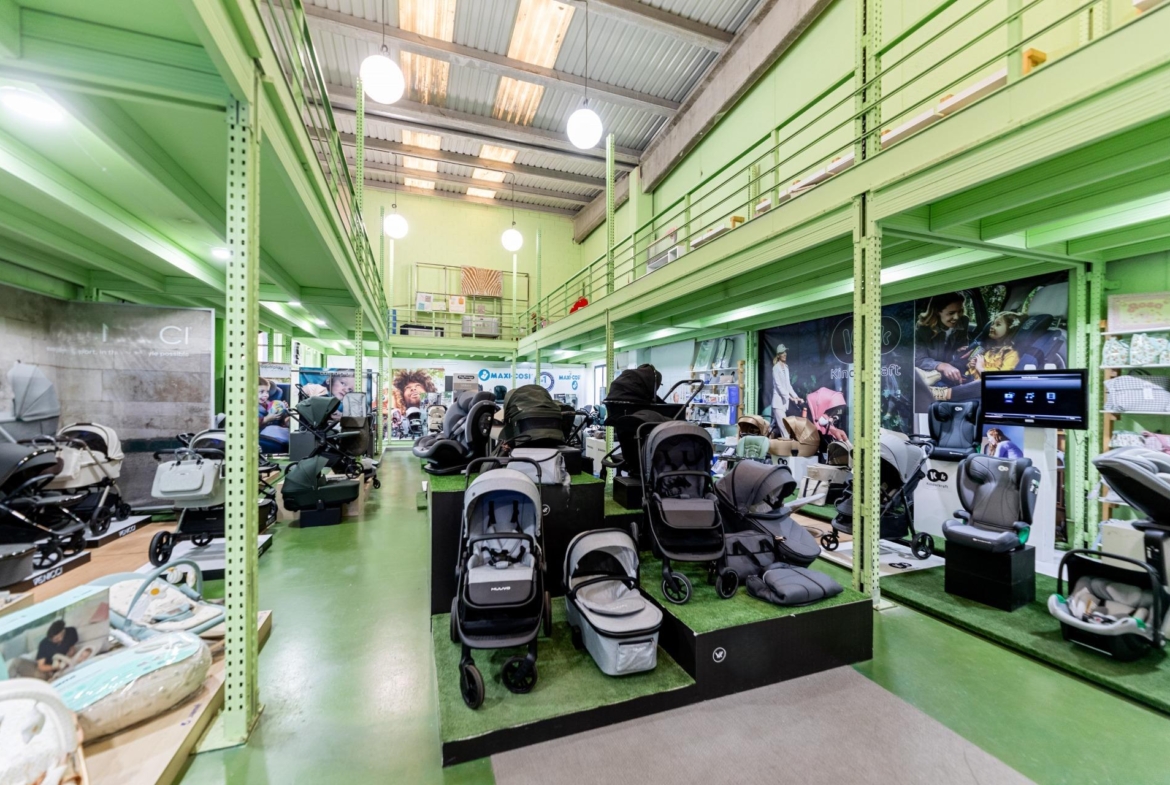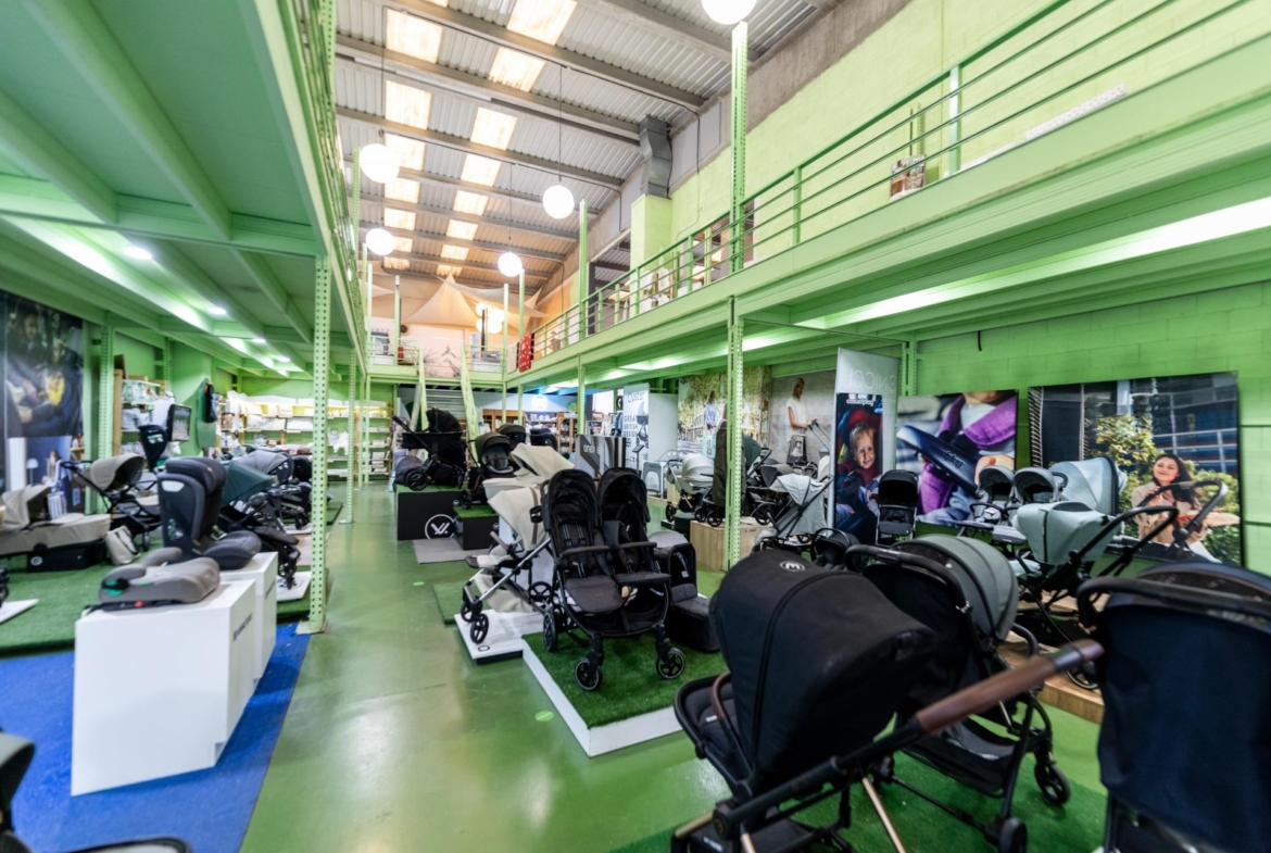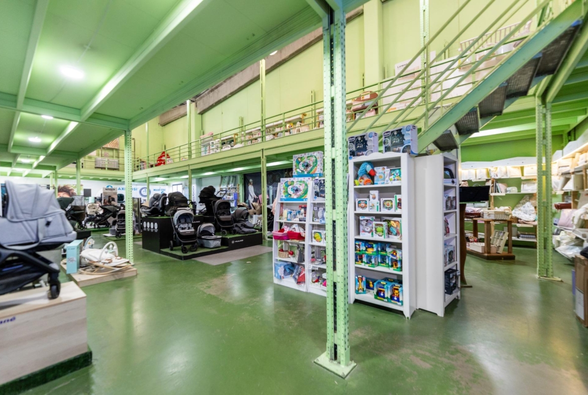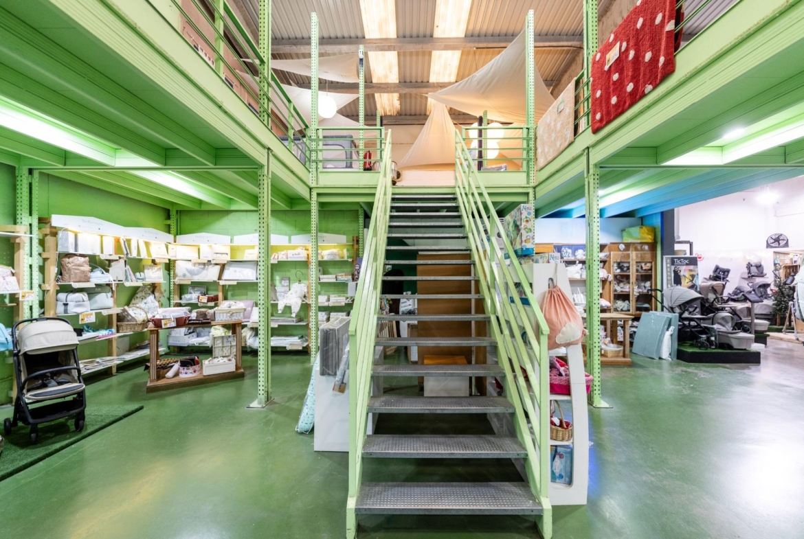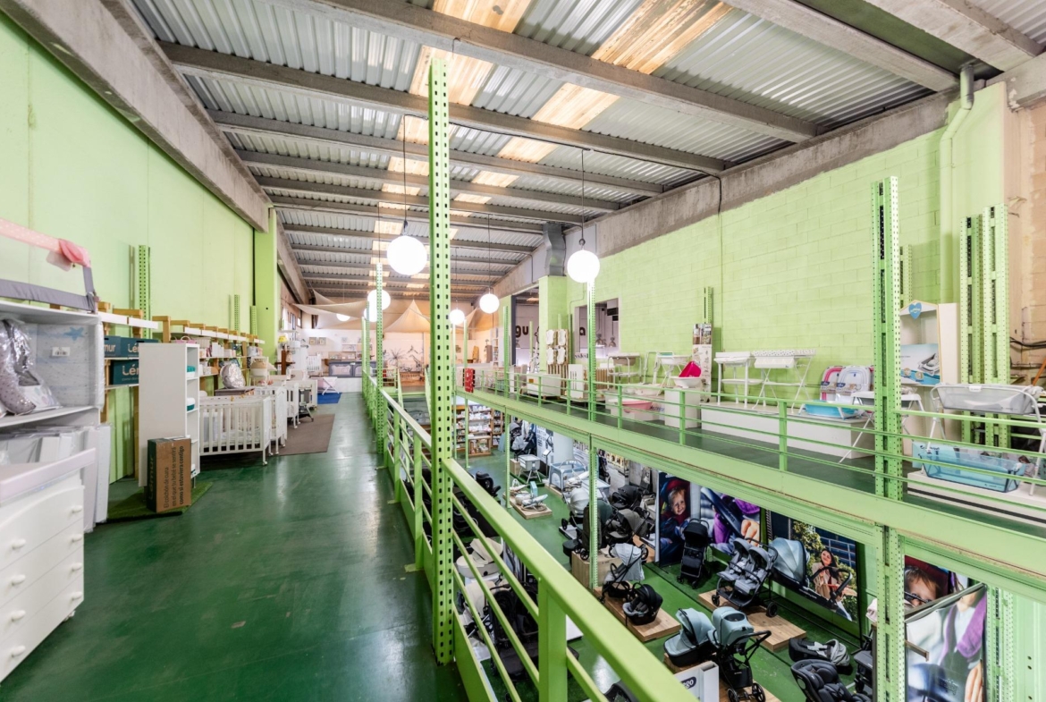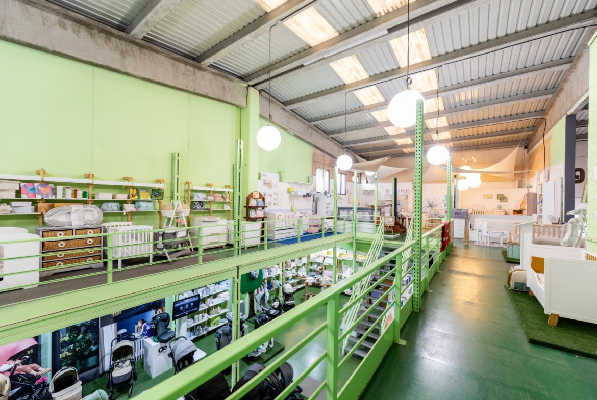 Nave de 500 m2 distribuidos en dos plantas, la planta de abajo a pie de calle de 300m2 y la planta primera de 200m2 ocupando los laterales y abierto en zona central.