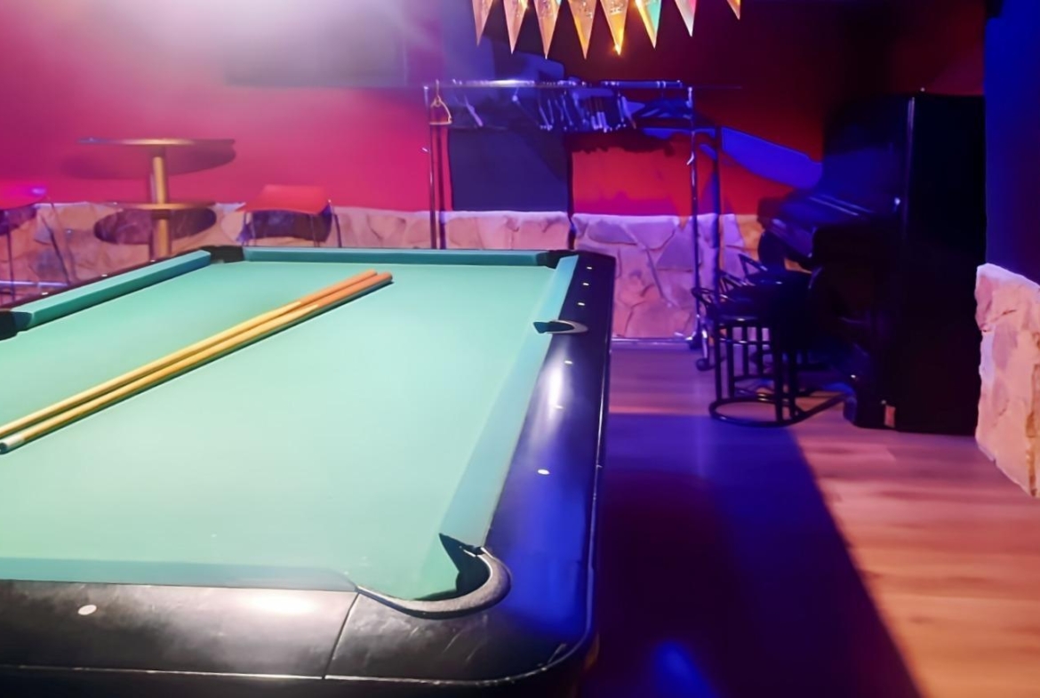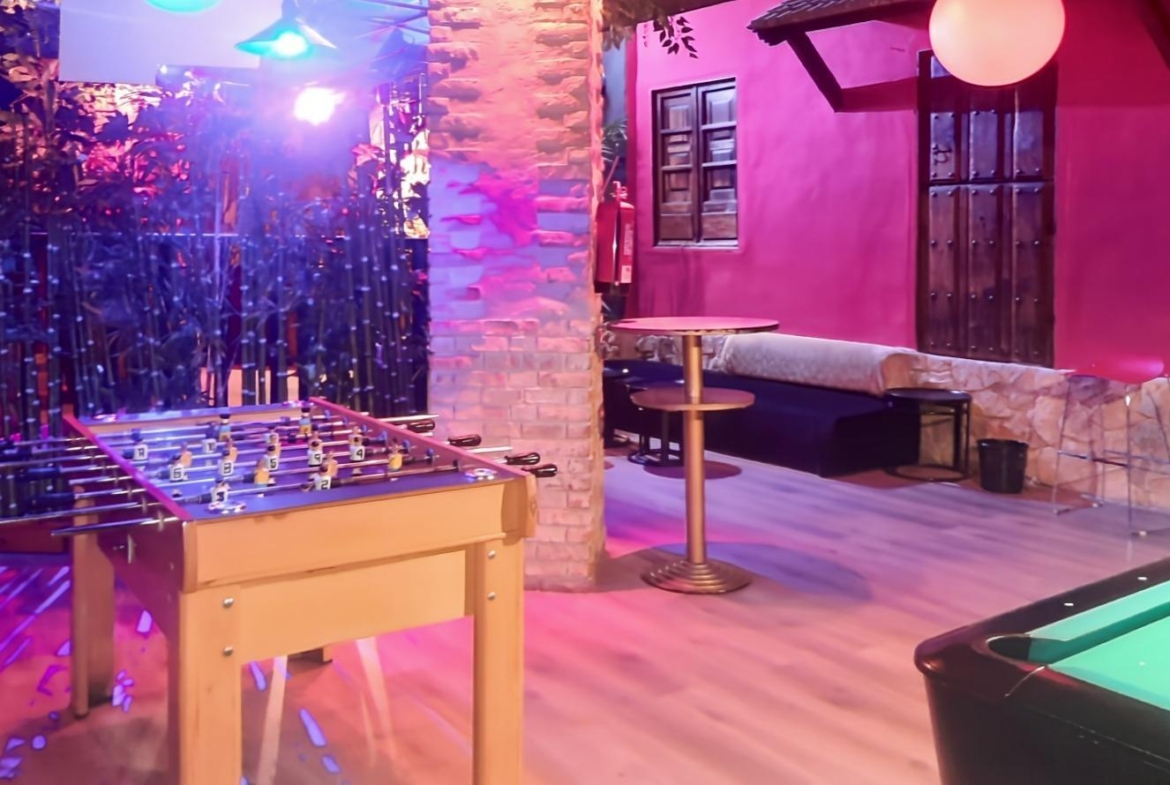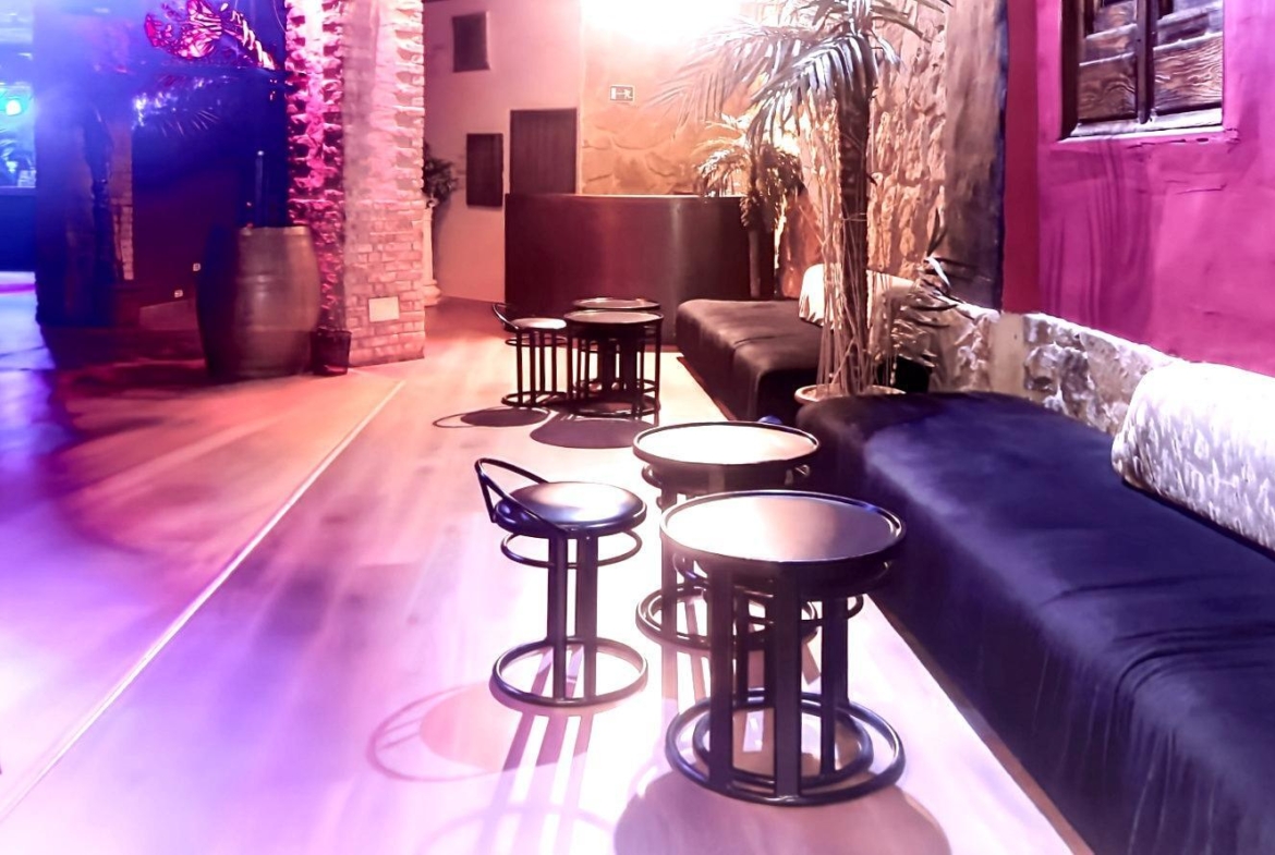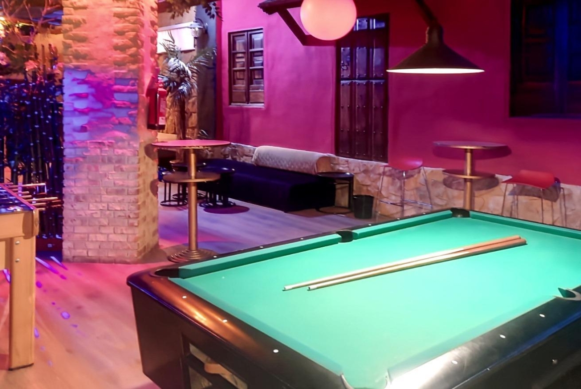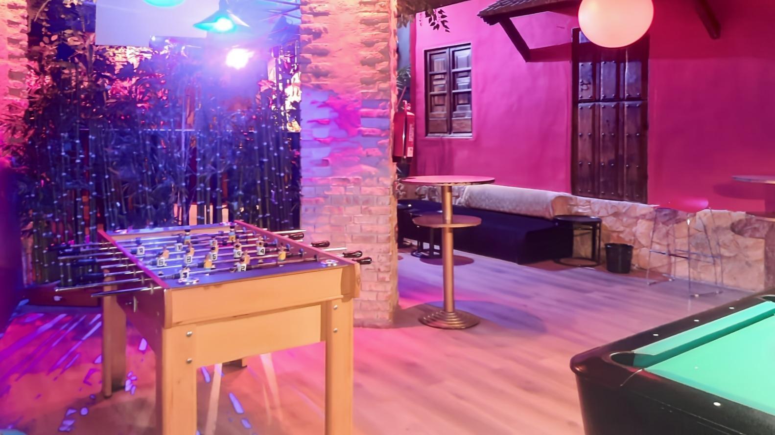 ?Planta sótano: Sala de fiestas de 218 m², completamente equipada con zona chillout, escenario, mesas de billar, futbolín, dardos y dos barras para bebidas. Cuenta con licencia de bar 1ª especial, con apertura hasta las 4 de la mañana. Dispone de dos baños y entradas independientes a cada local.